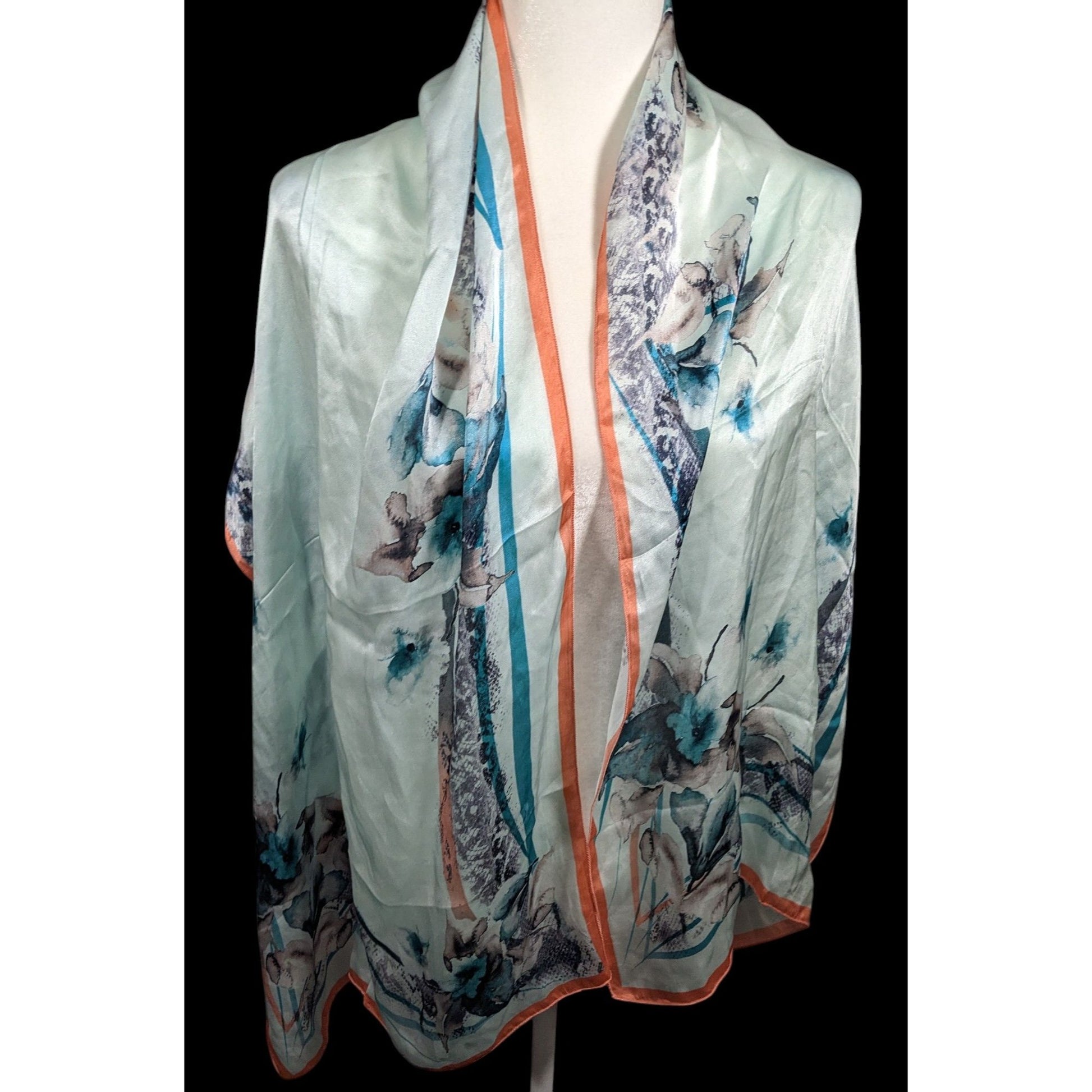 Diamantine Blue Floral Silky Lightweight Scarf