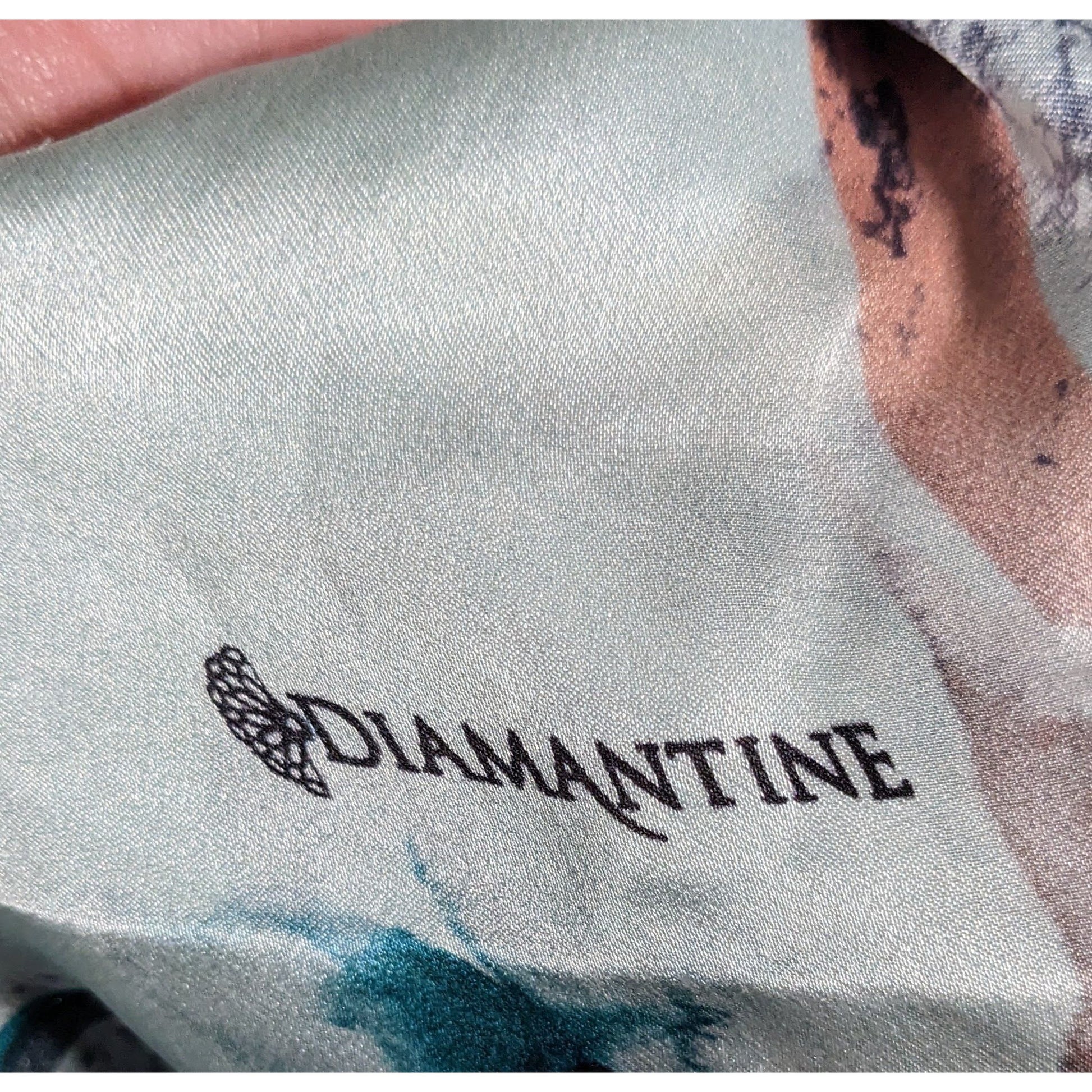 Gently used. The scarf itself is signed as part of the pattern, but the fabric tag has been removed. The edge of the fabric tag that is sew on is still present, as it has been cut in a way to not damage the scarf.