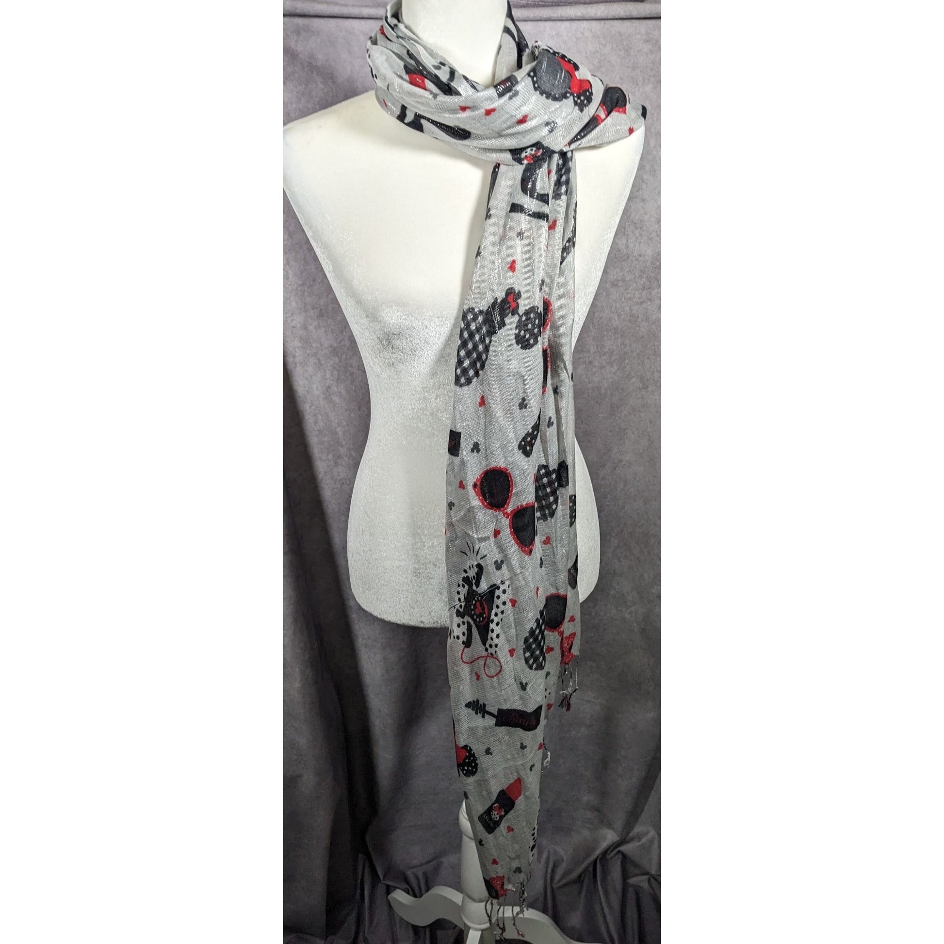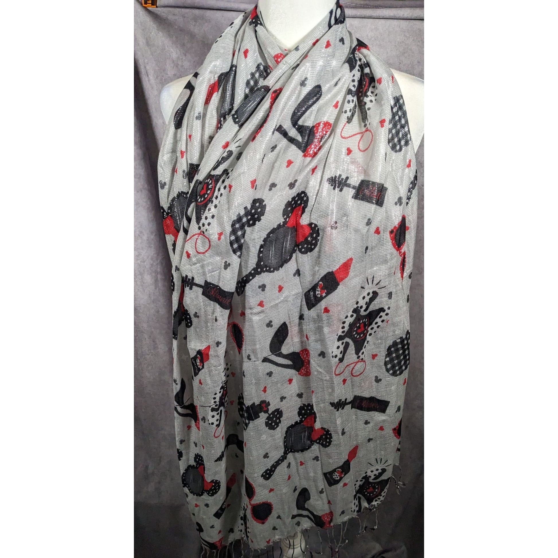 Disney Parks Minnie Mouse Icons Metallic Silver Scarf