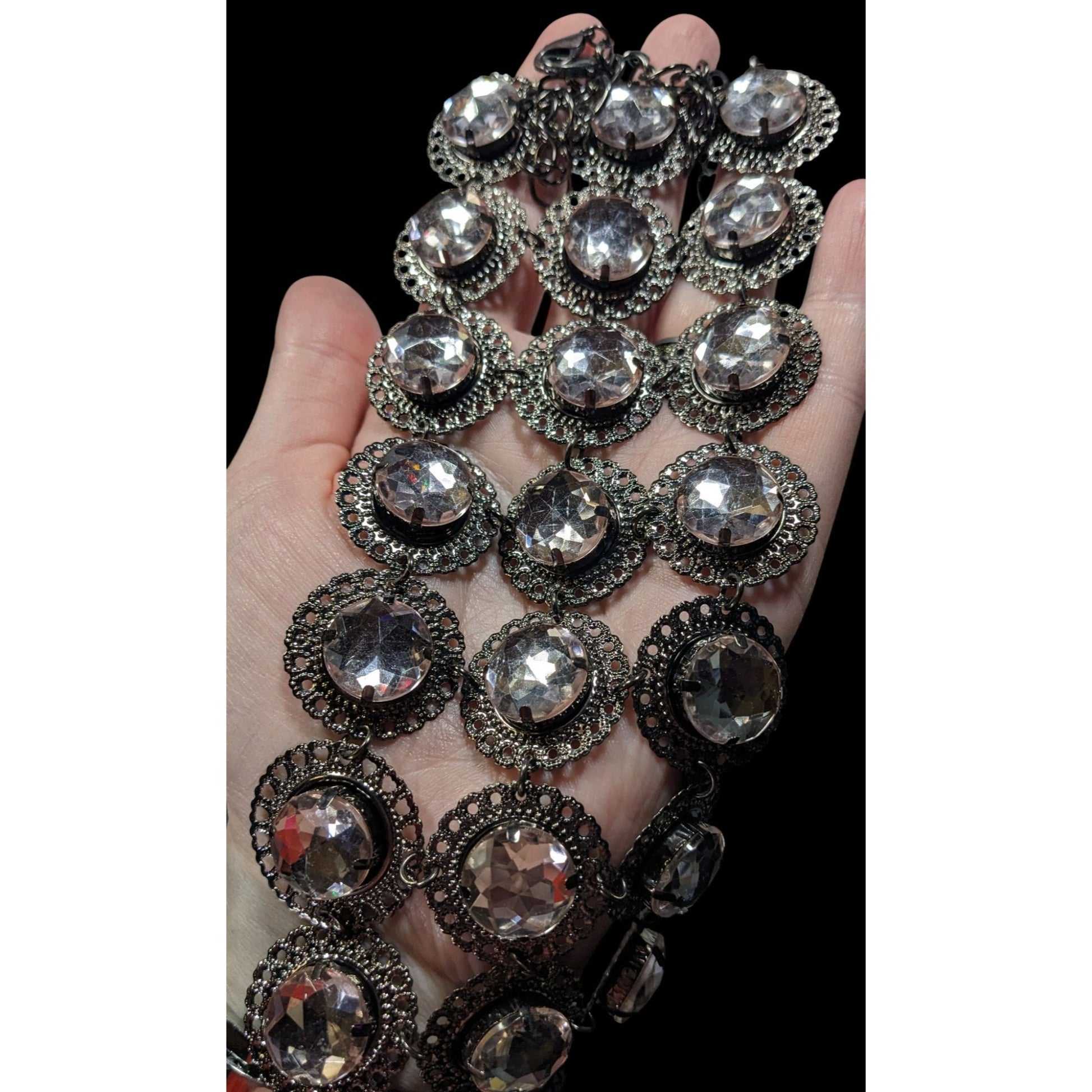 Elegant Glam Lightweight Gemmed Silver Tone Statement Necklace