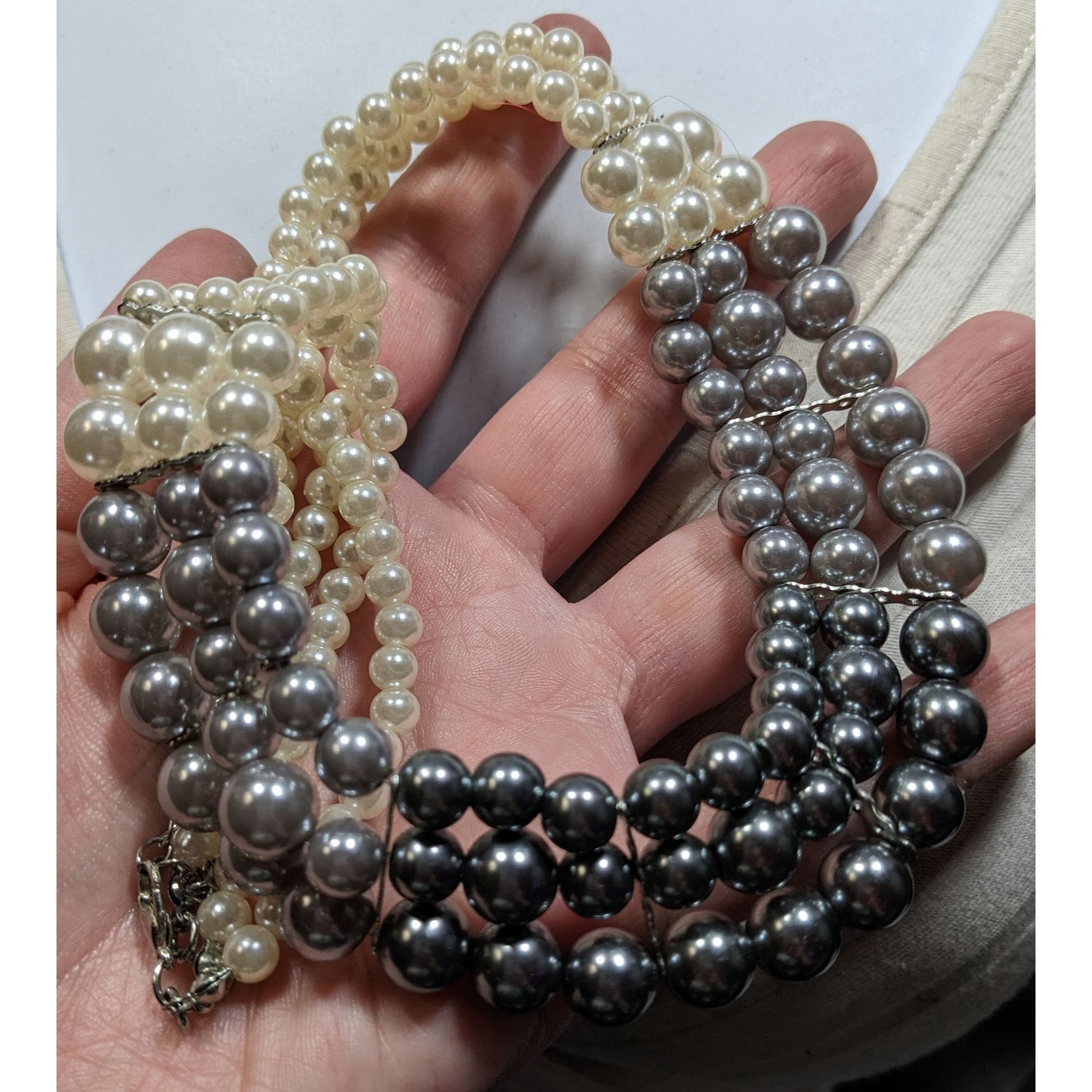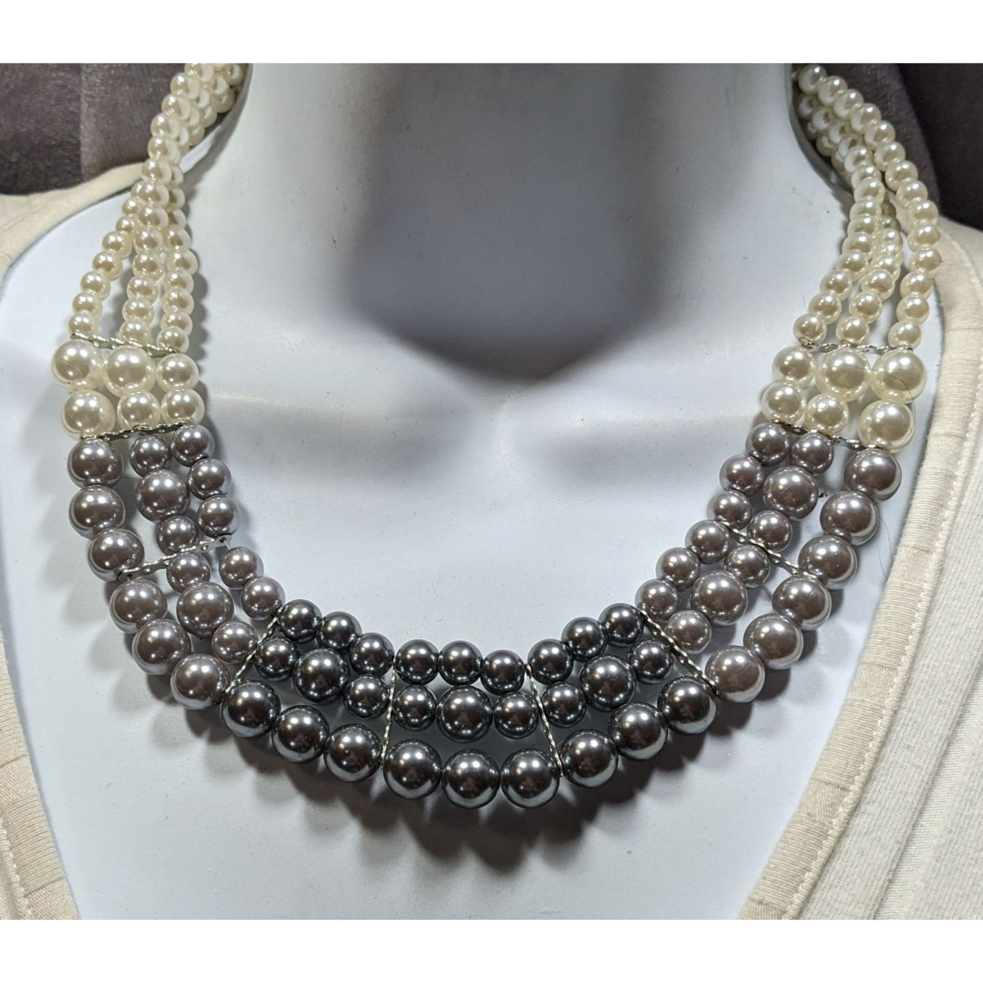 Elegant Multi-Strand Faux Pearl Necklace In White & Gray Ombre
