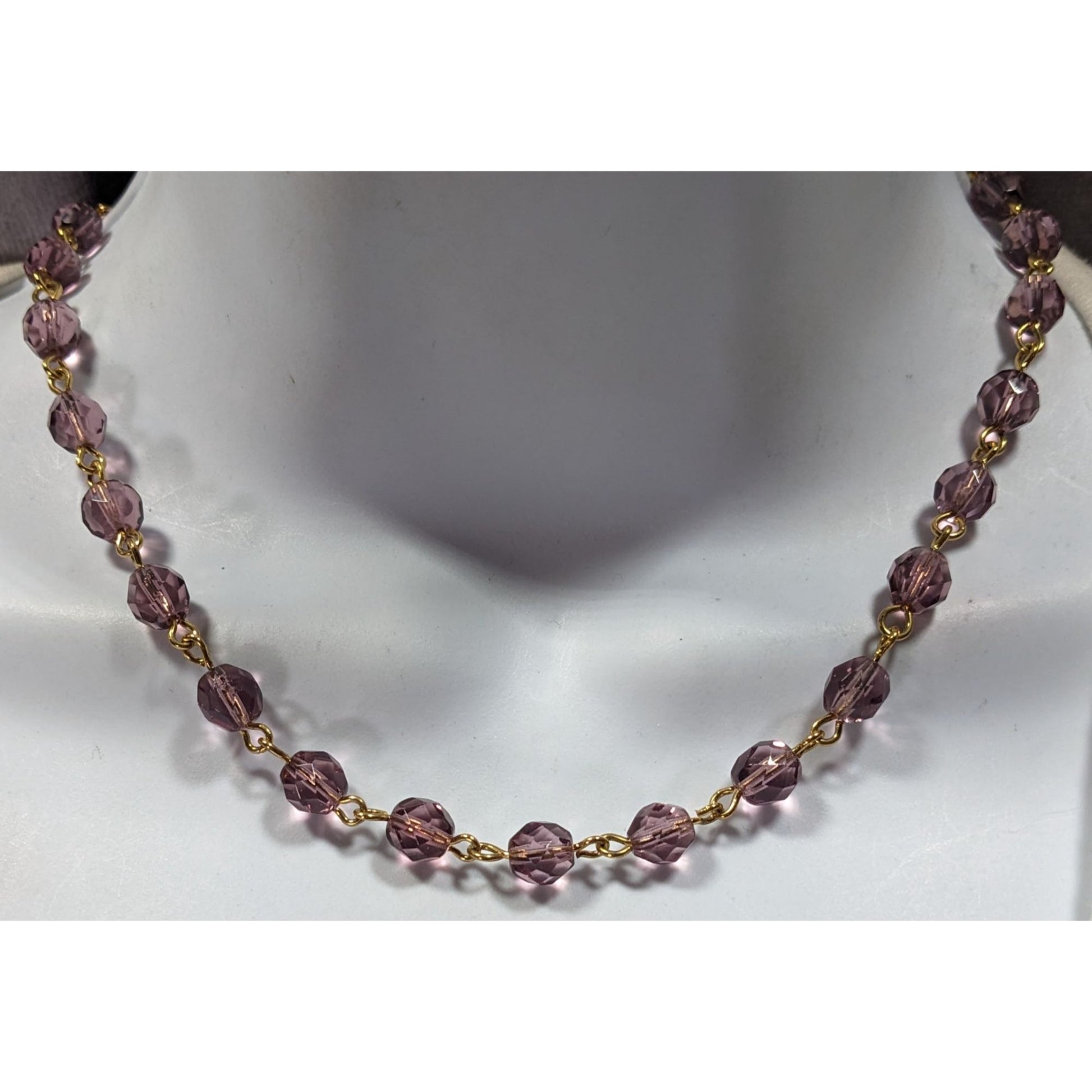 Elevate your style with this stunning purple and gold tone glass beaded necklace. Perfect for any occasion, this elegant piece adds a regal touch to any outfit.
