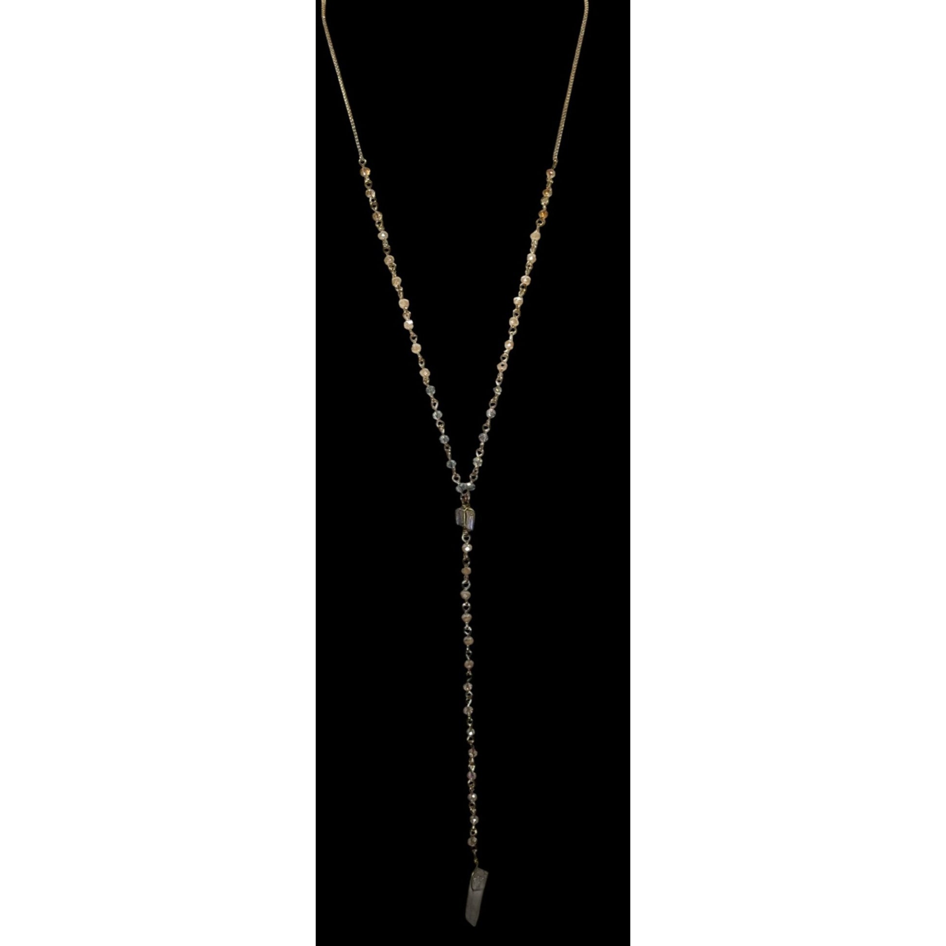 Elegant Y Necklace With Crystal Pendant & Beaded Chain