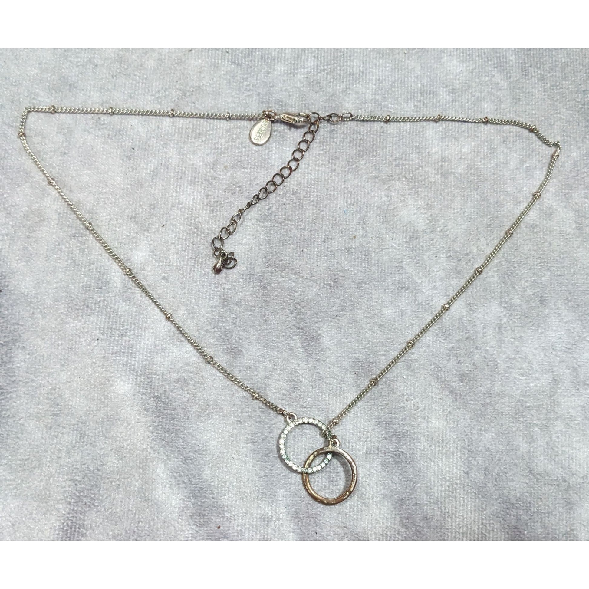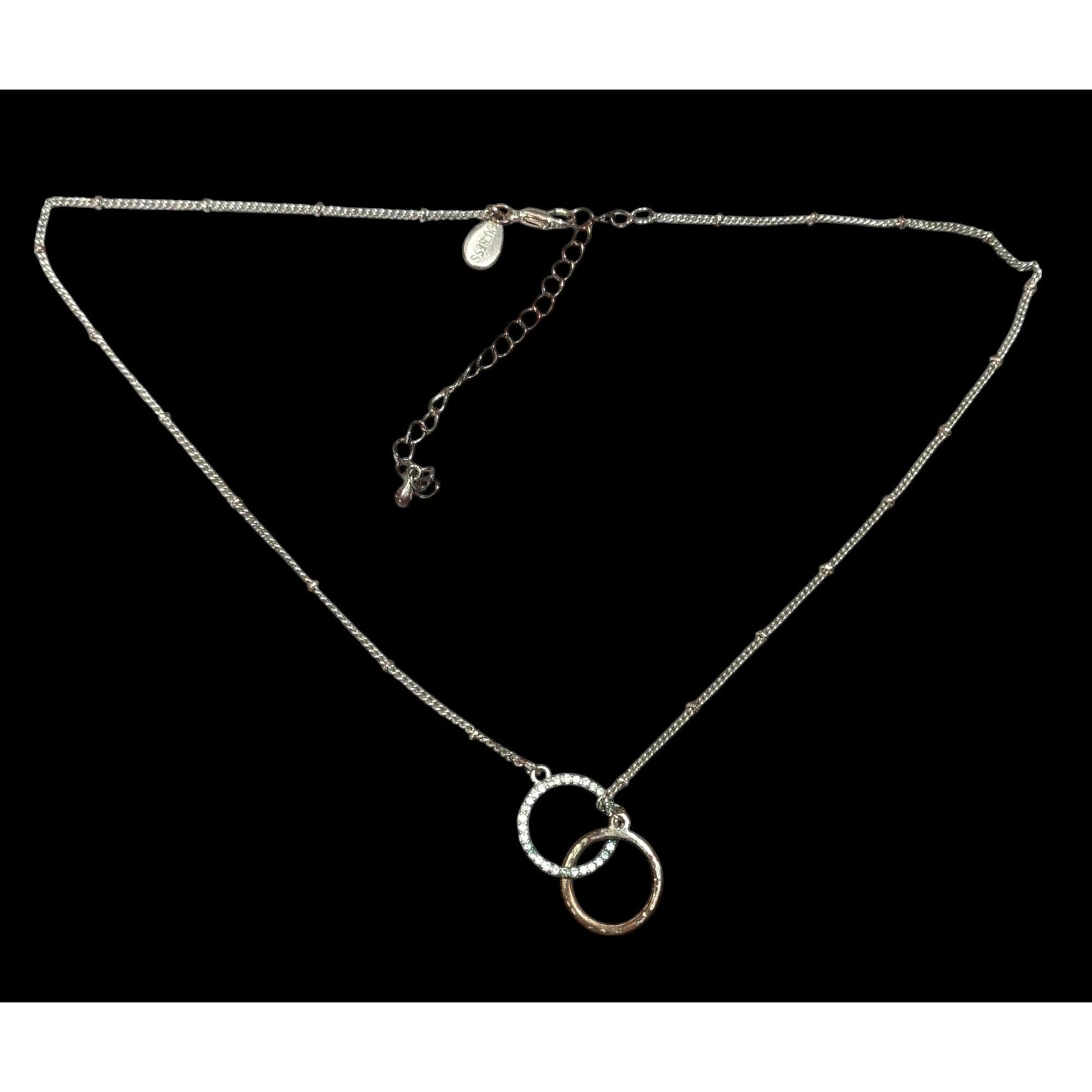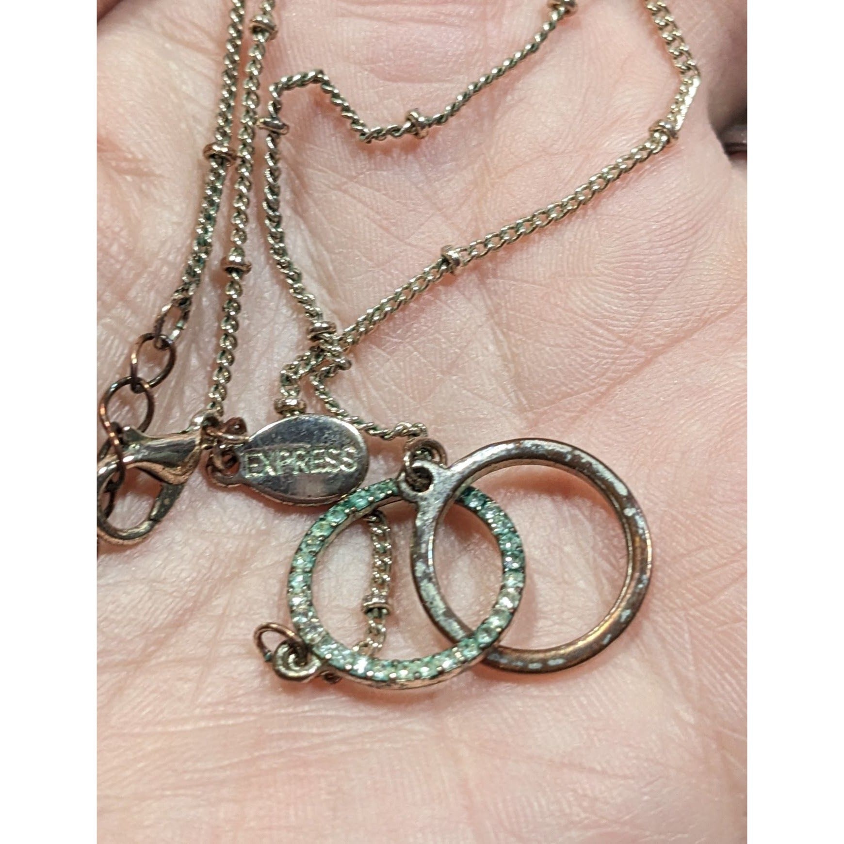 Express Minimalist Silver Tone Rhinestone Double Ring Necklace