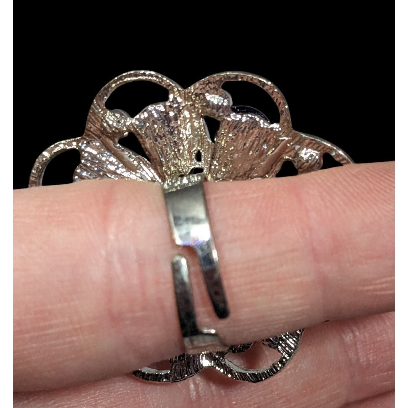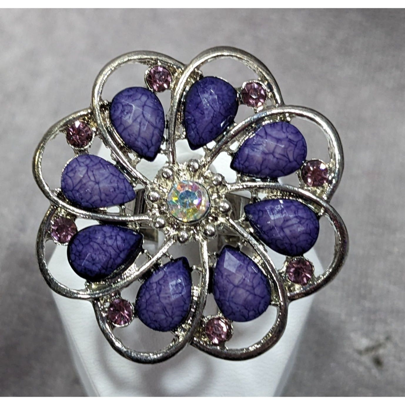 Fairycore Floral Gemmed Purple And Silver Tone Adjustable Ring