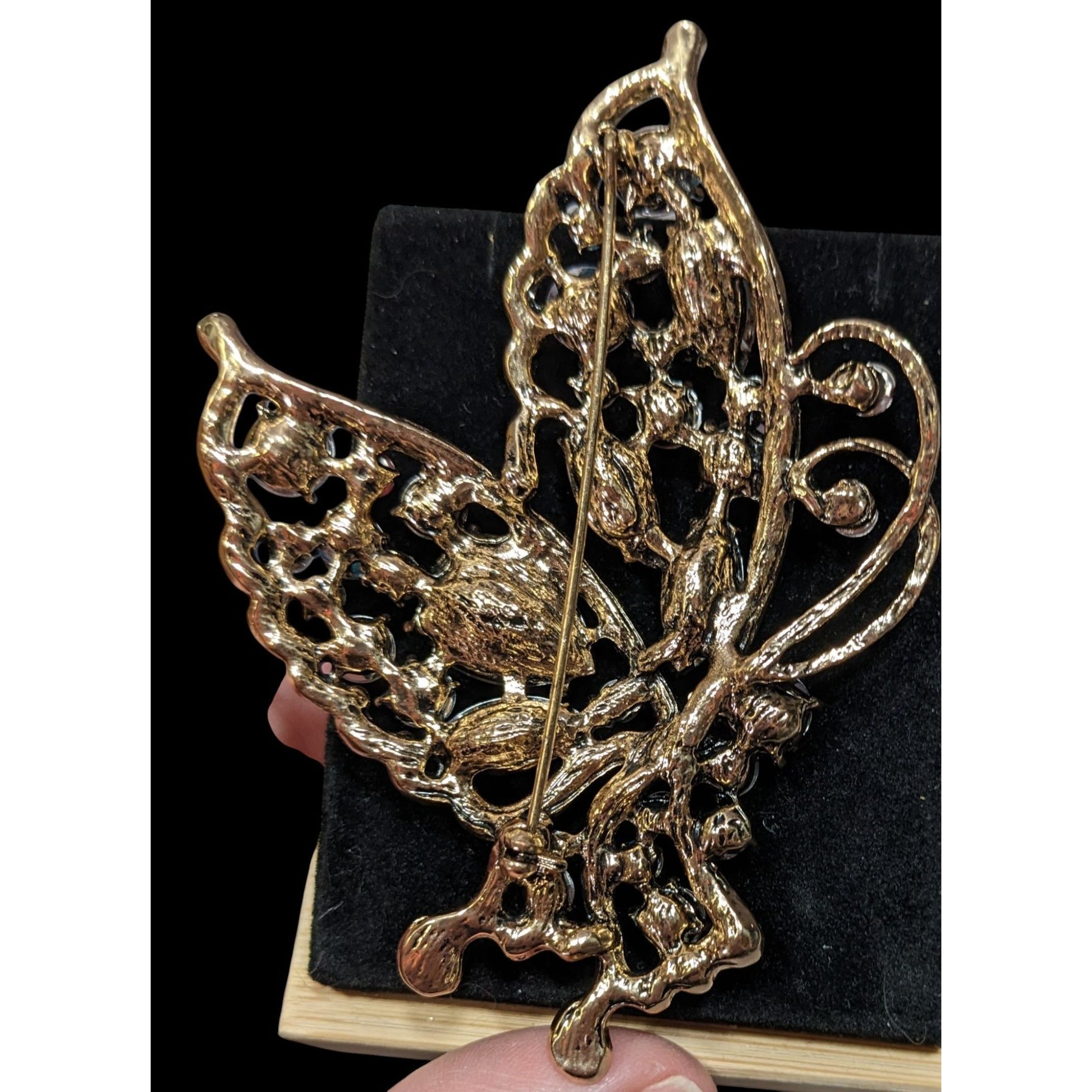 This stunning large brooch features a rainbow gemmed butterfly design, perfect for adding a touch of fantasy glam to any outfit. Ideal for special occasions or everyday wear.