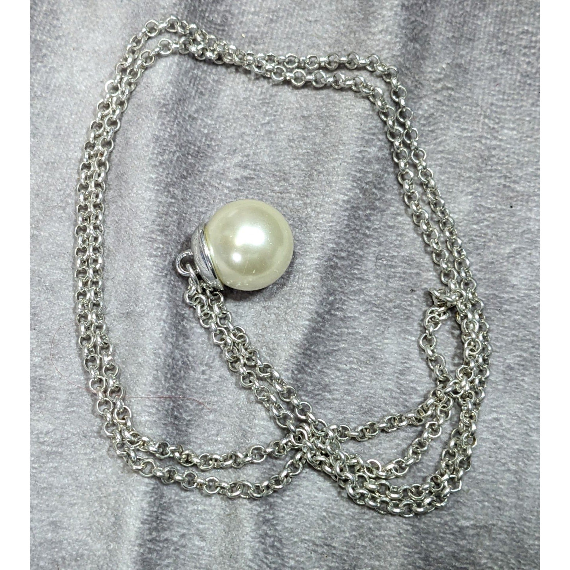 Faux Pearl Ball Pendant On Silver-Tone Long Chain
