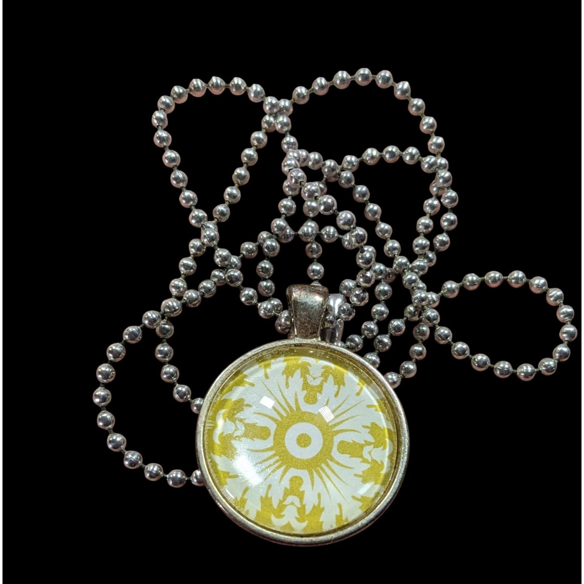 Floral Fairycore White And Yellow Cabochon Pendant Necklace