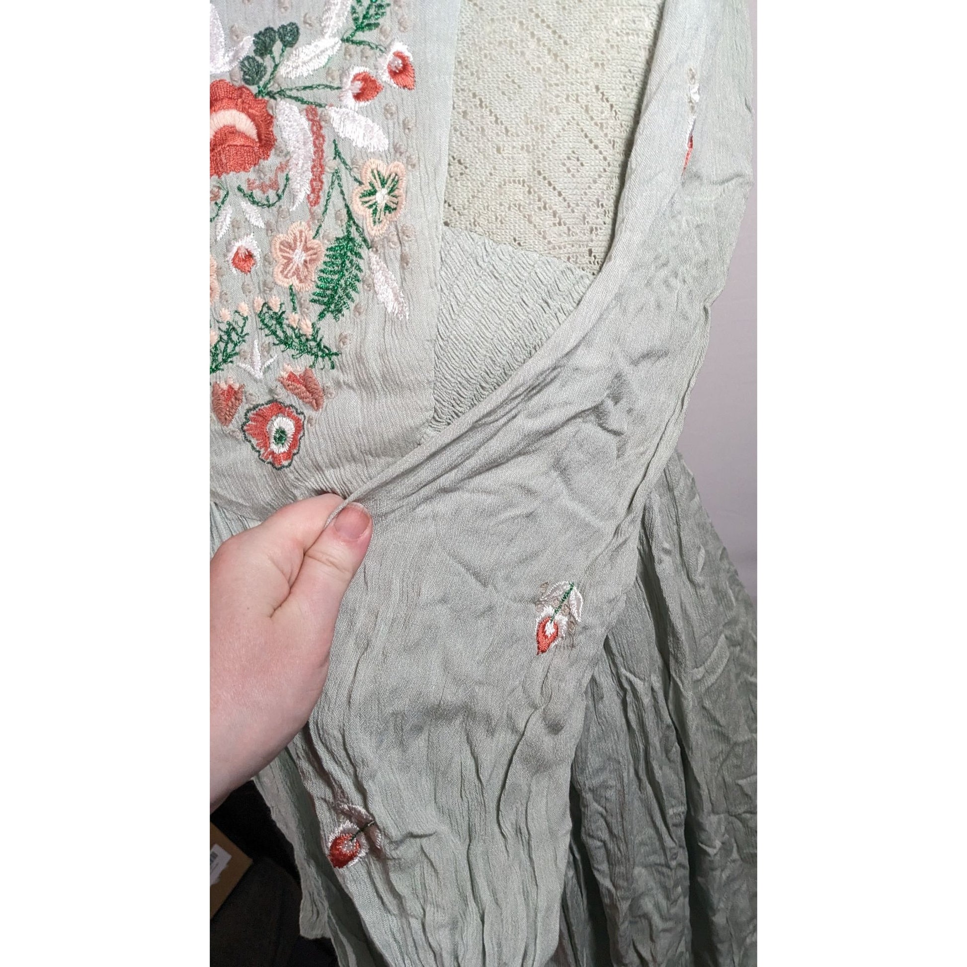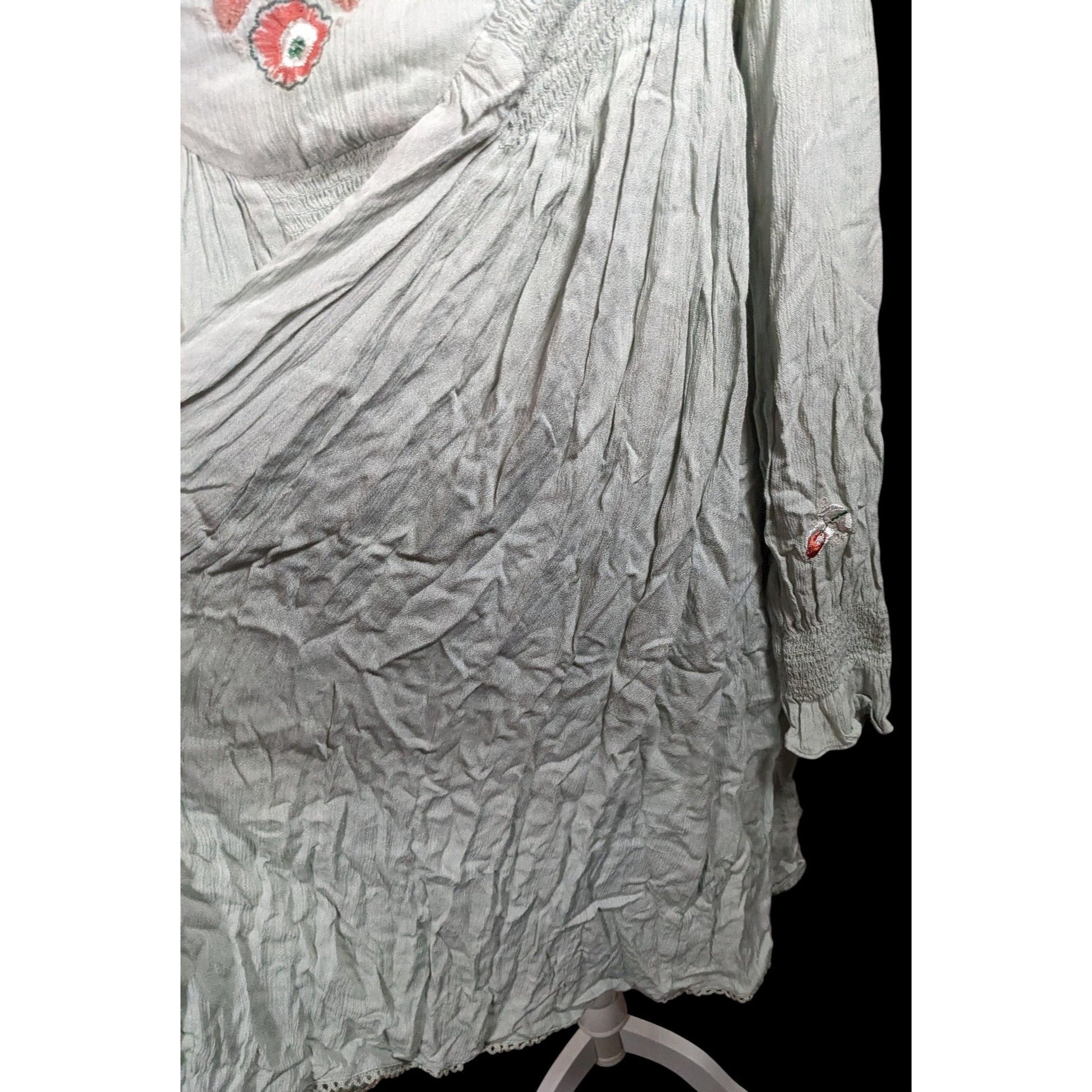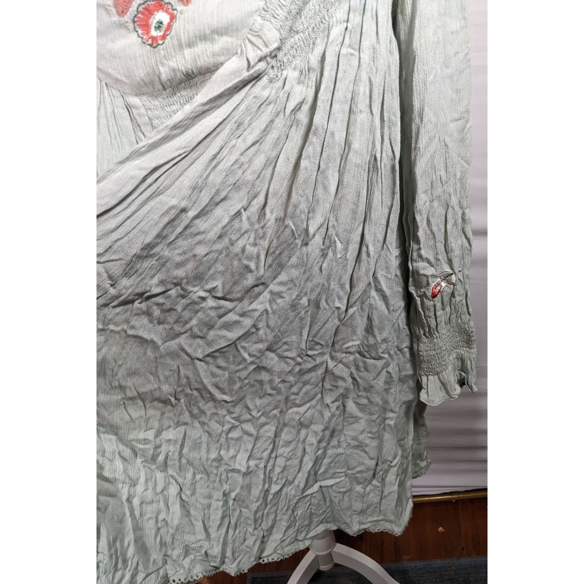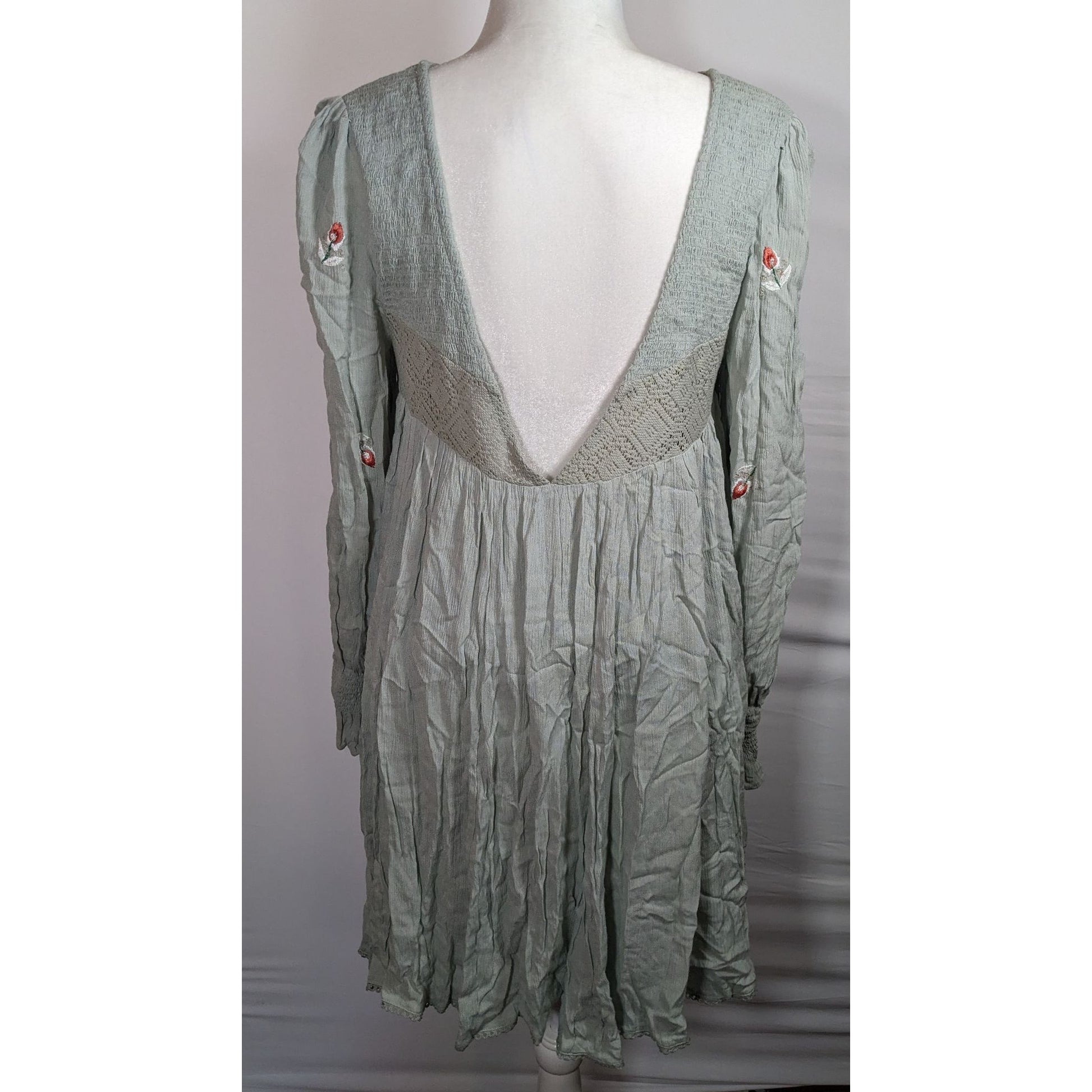 Free People Bohemian Floral Sage Dress With Embroidery