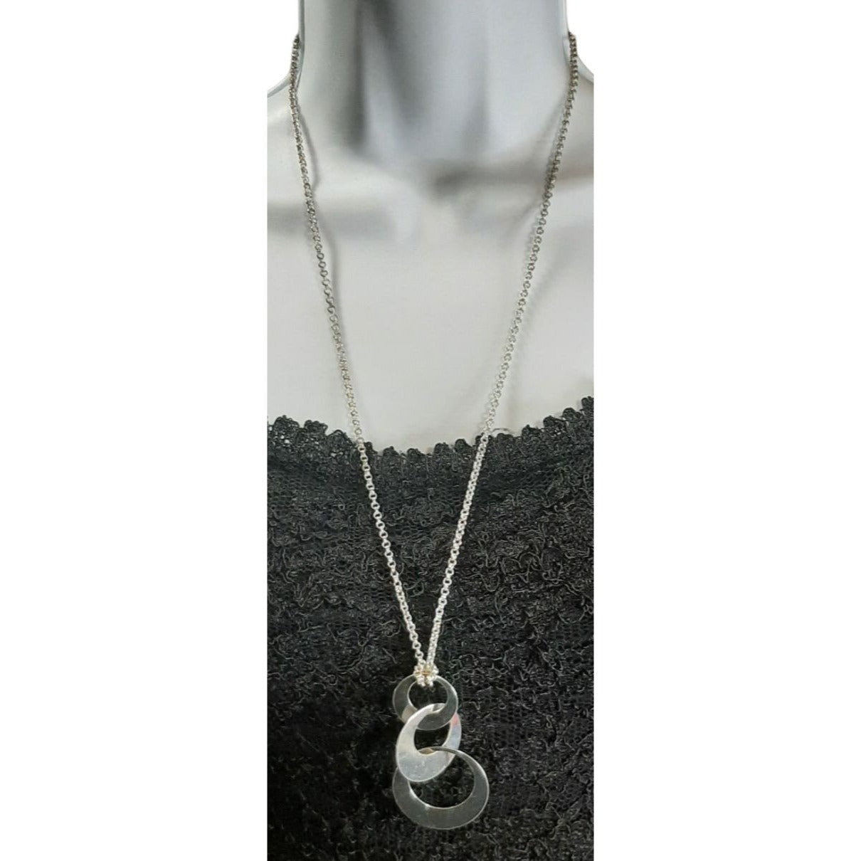 • Interlocking silver tone pendant