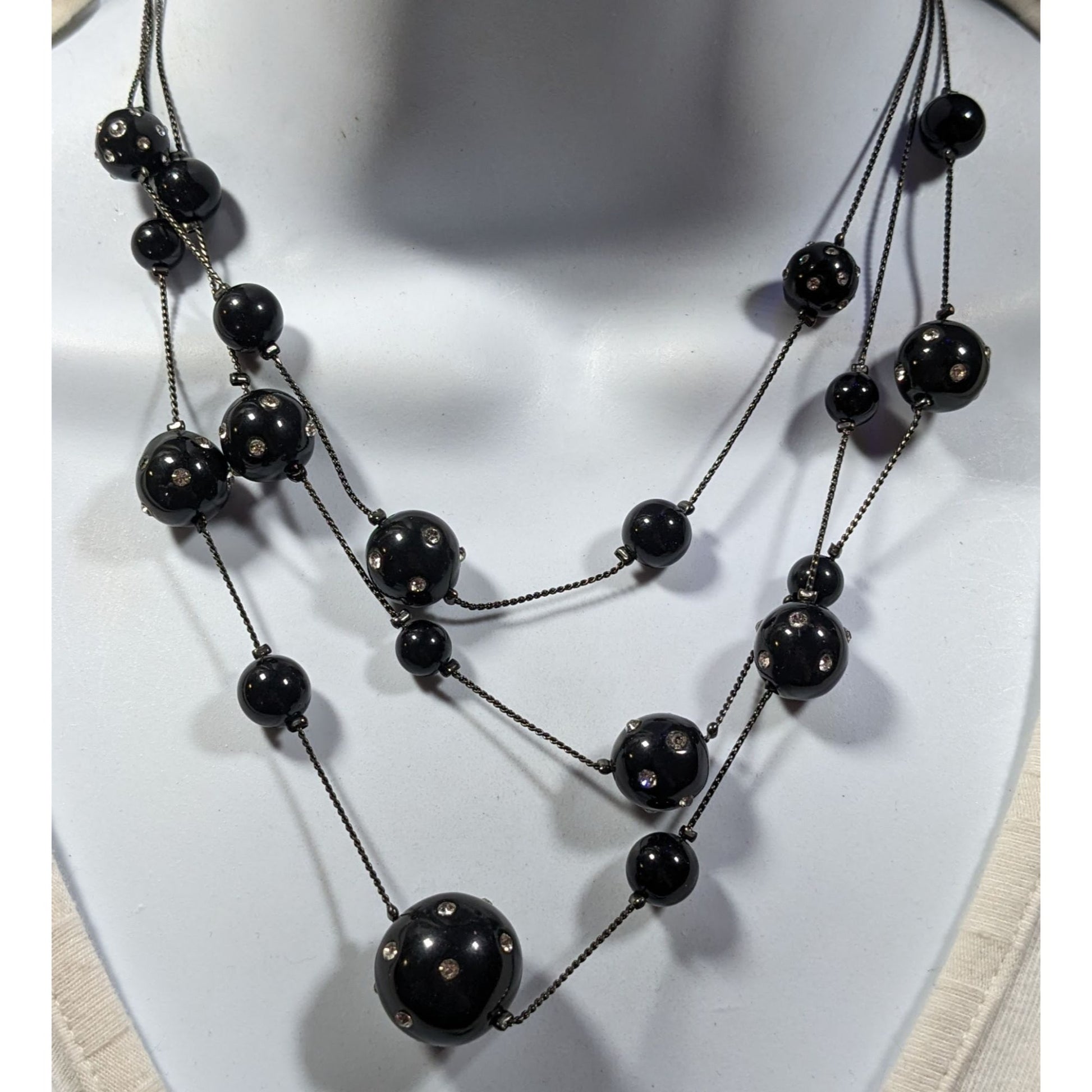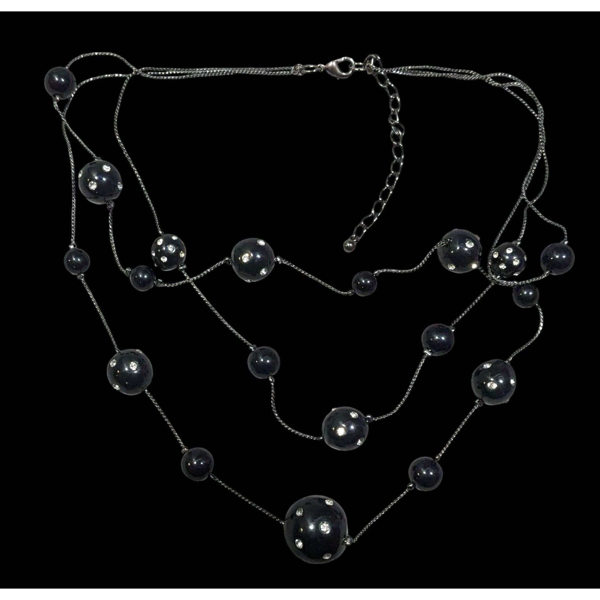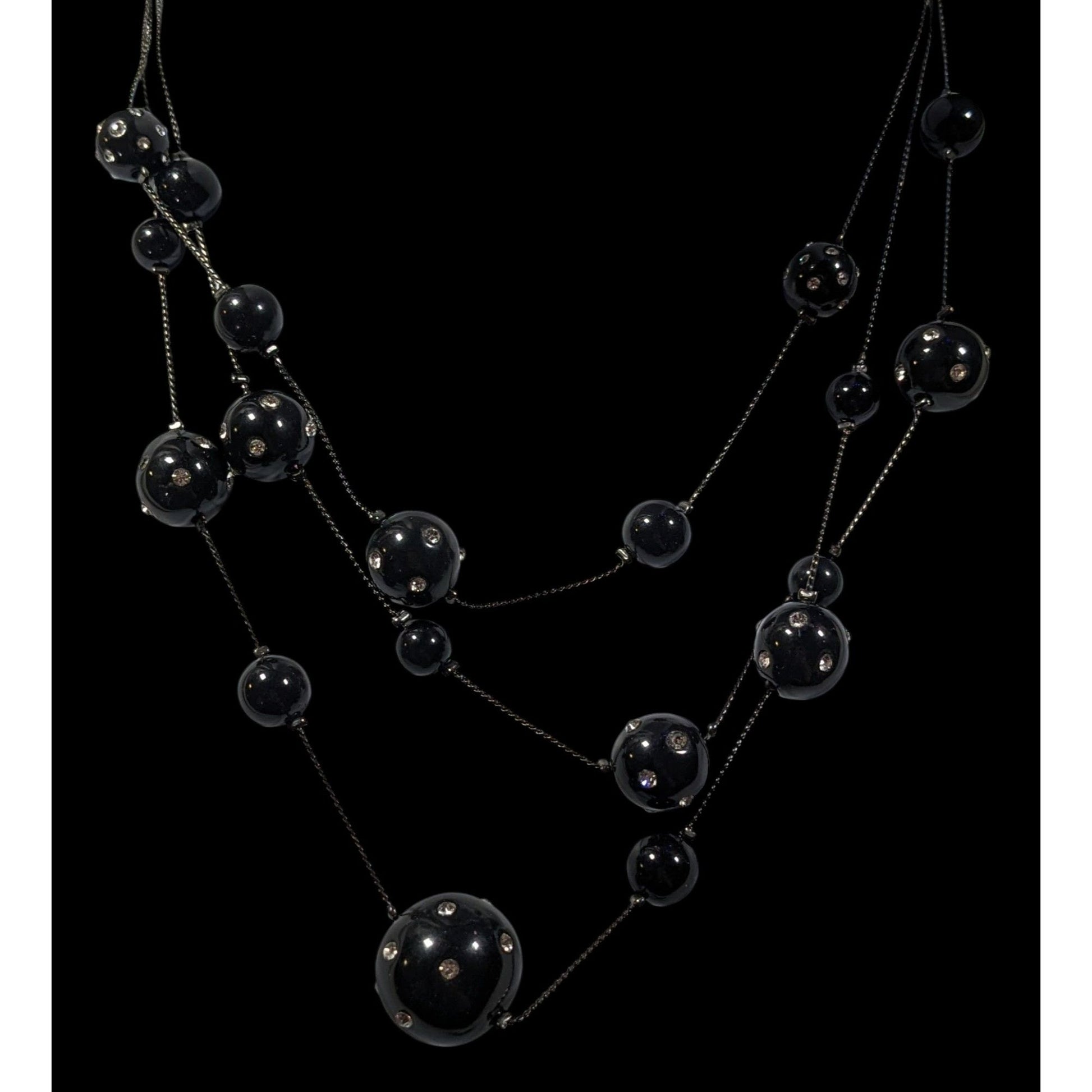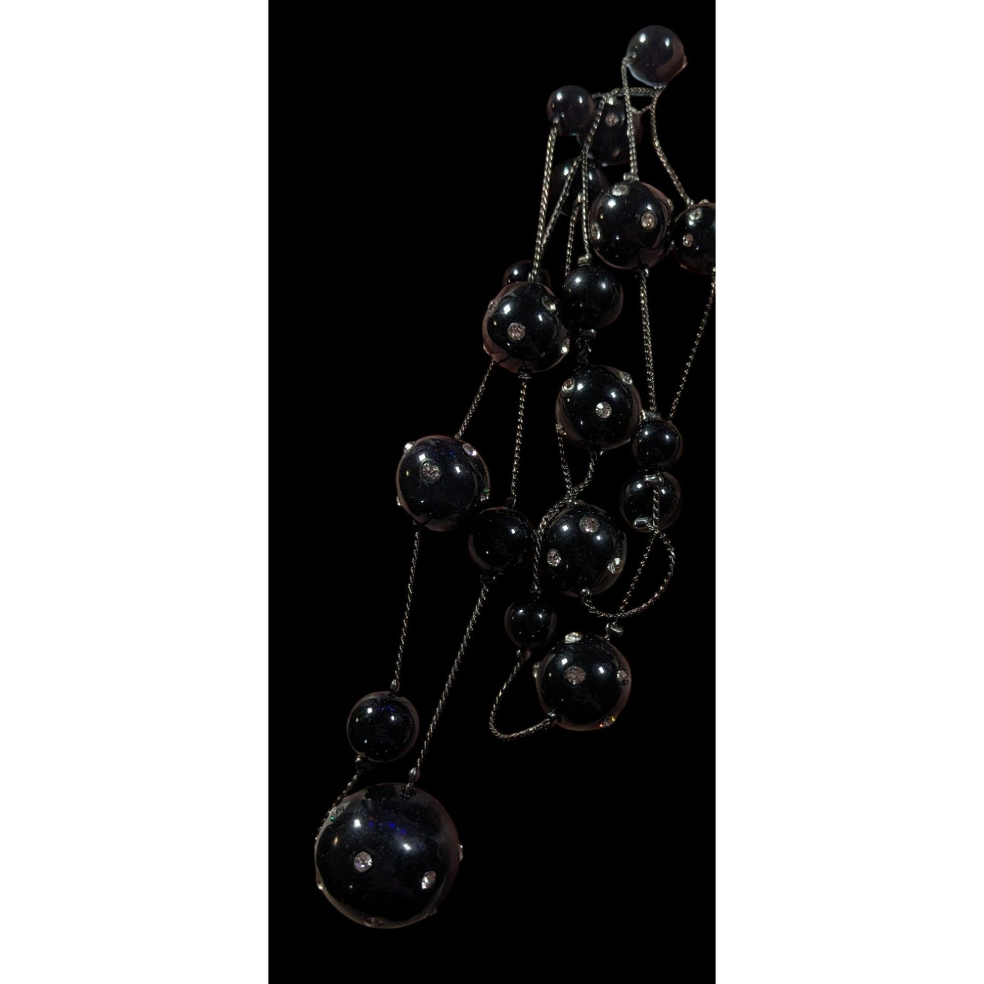 Glam Goth Black With Rhinestones Floating Necklace