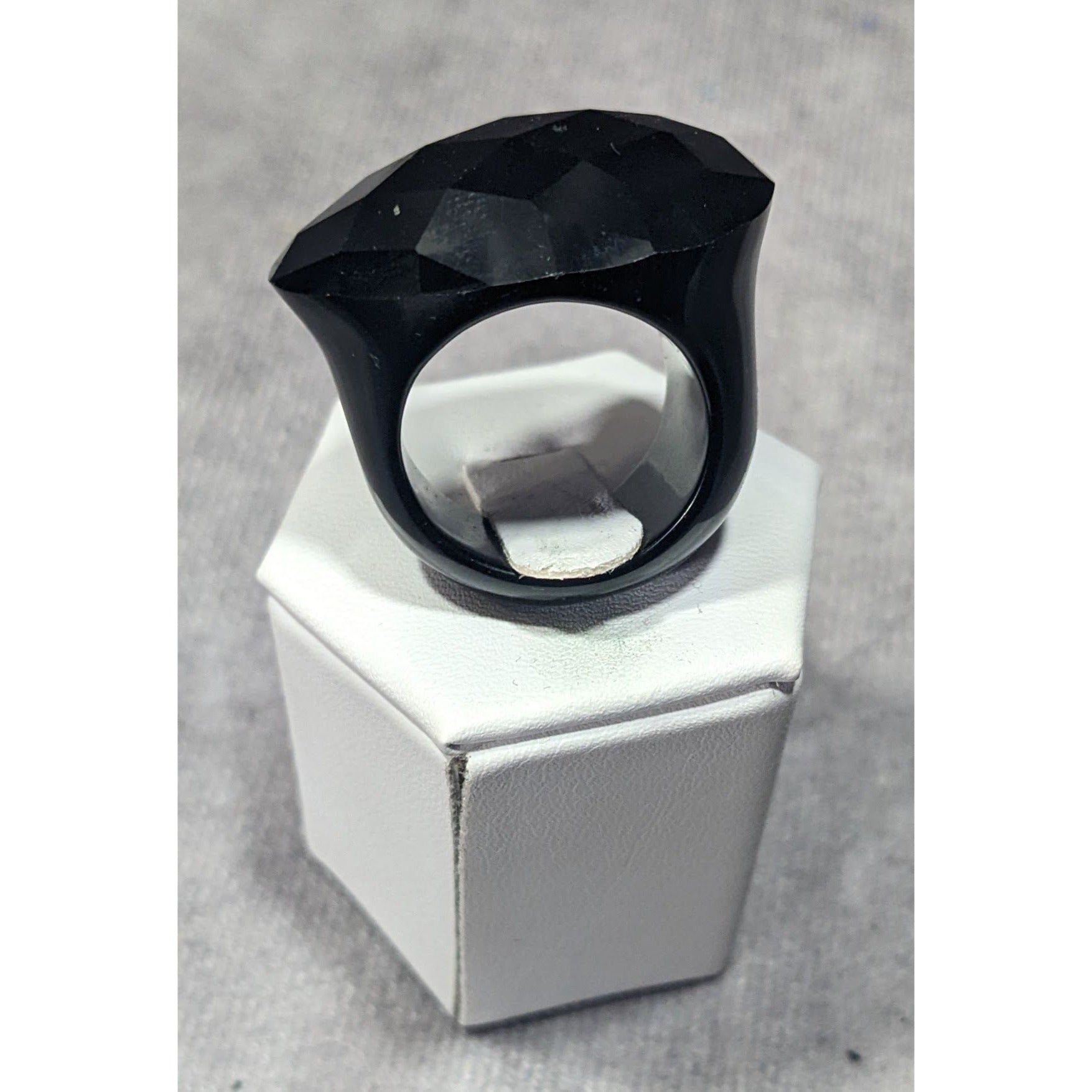 Elevate your style with this Glam Goth faceted teardrop ring. Its heavy black design and bold presence make it a striking accessory for any occasion. Perfectly sized at 8 1/2 for a comfortable fit.