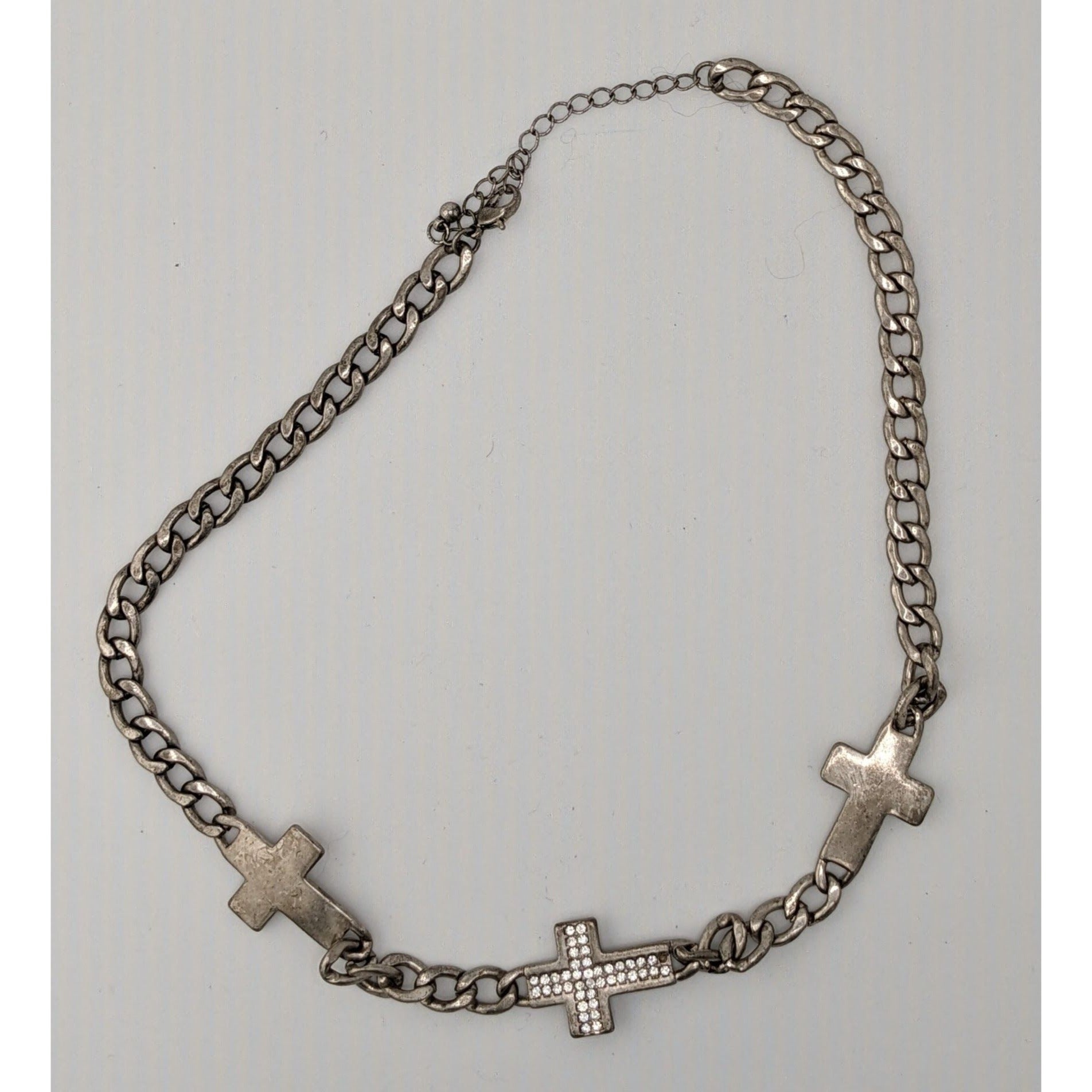 Glam Goth Triple Cross Necklace With Rhinestone Accents