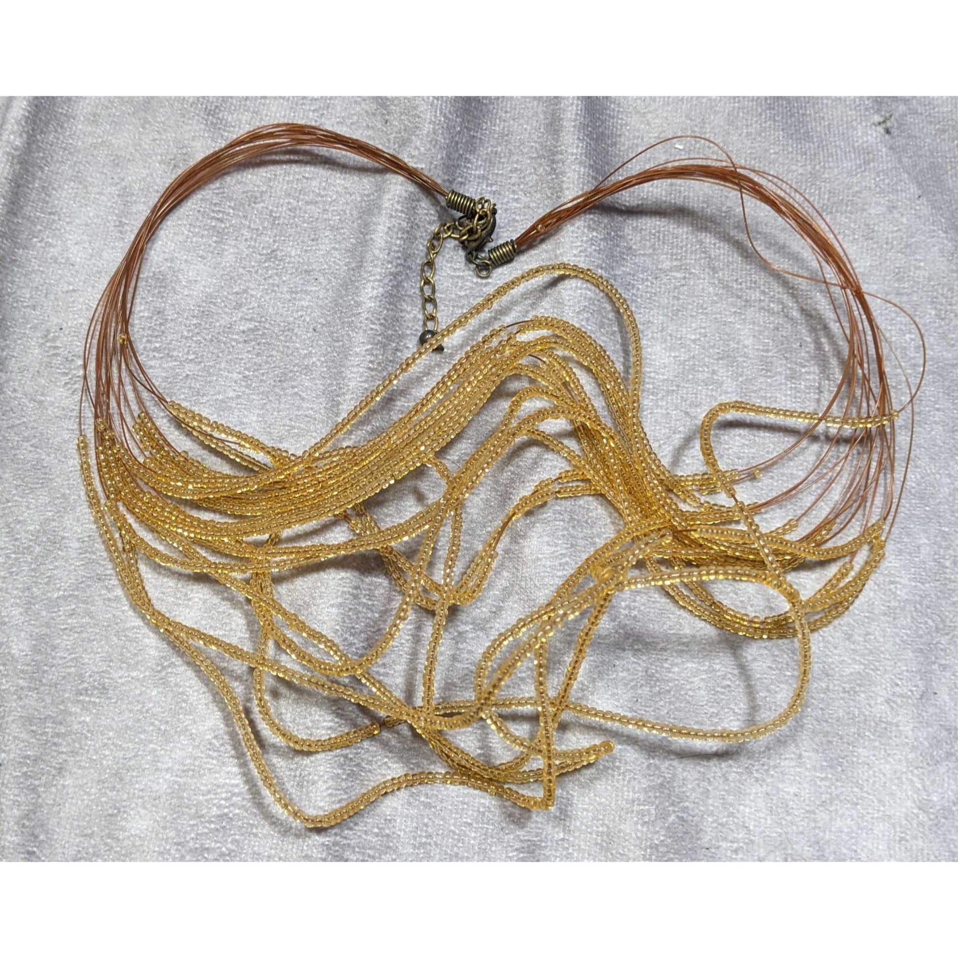 Golden Glass Multi-Strand Beaded Necklace On Copper Tone Beading Wire