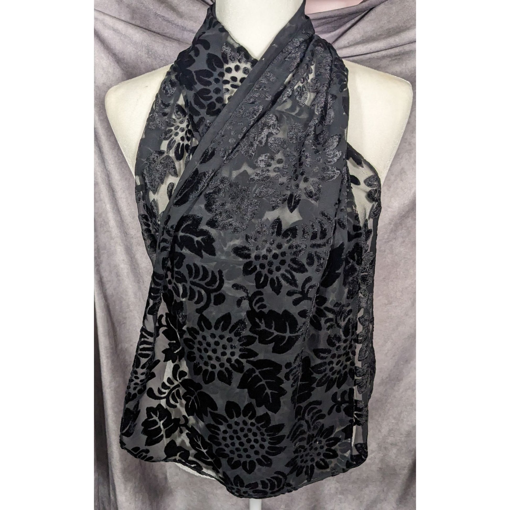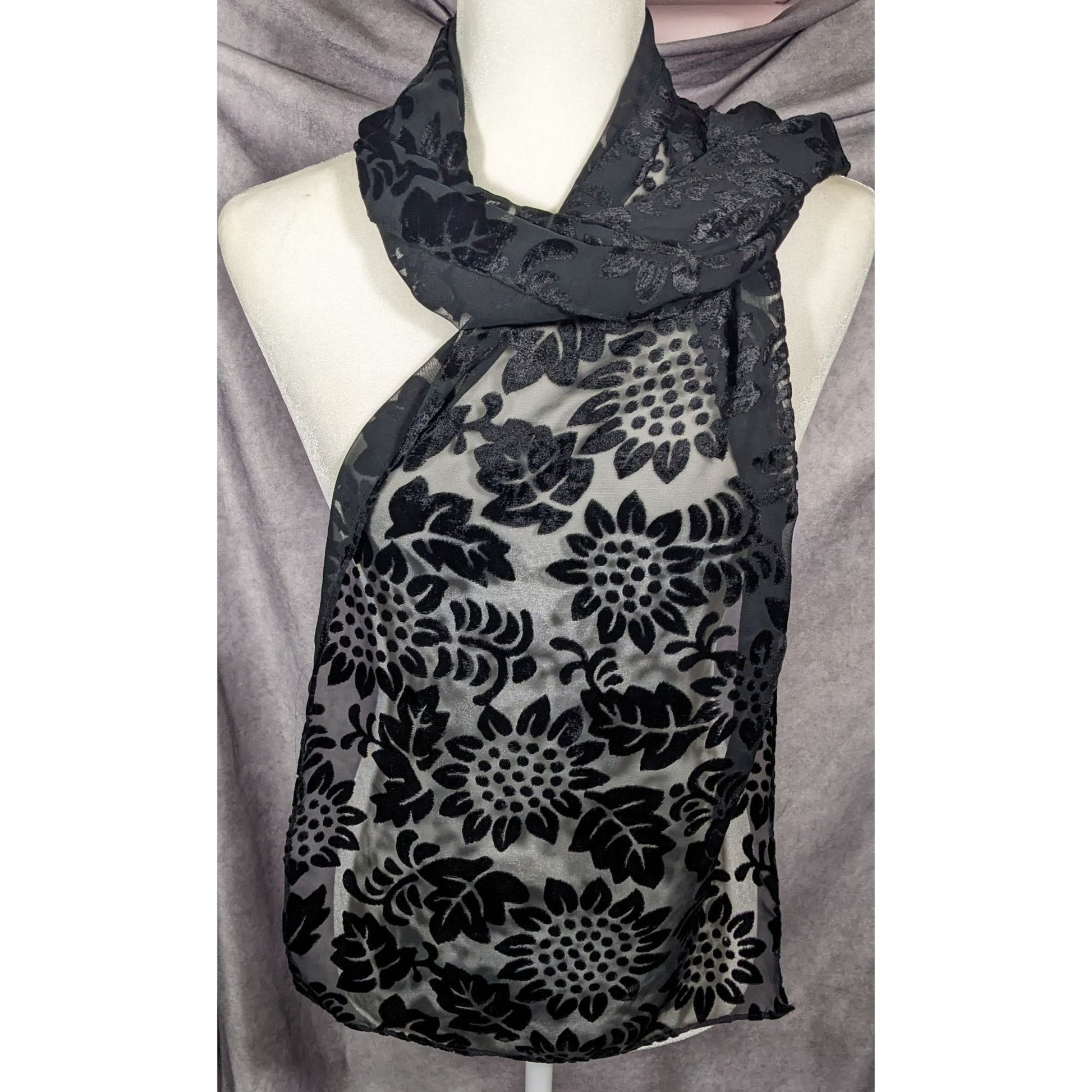 Gothic Floral Black Velvet Burnout Scarf