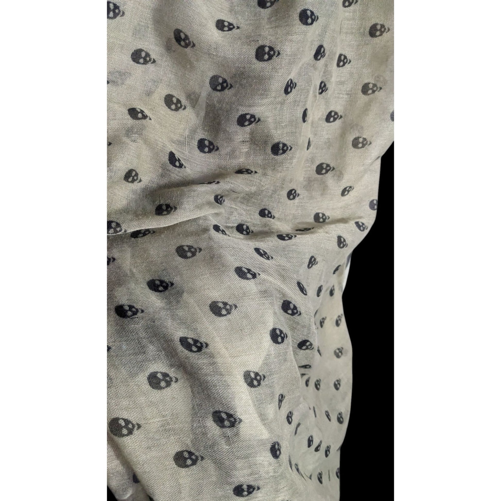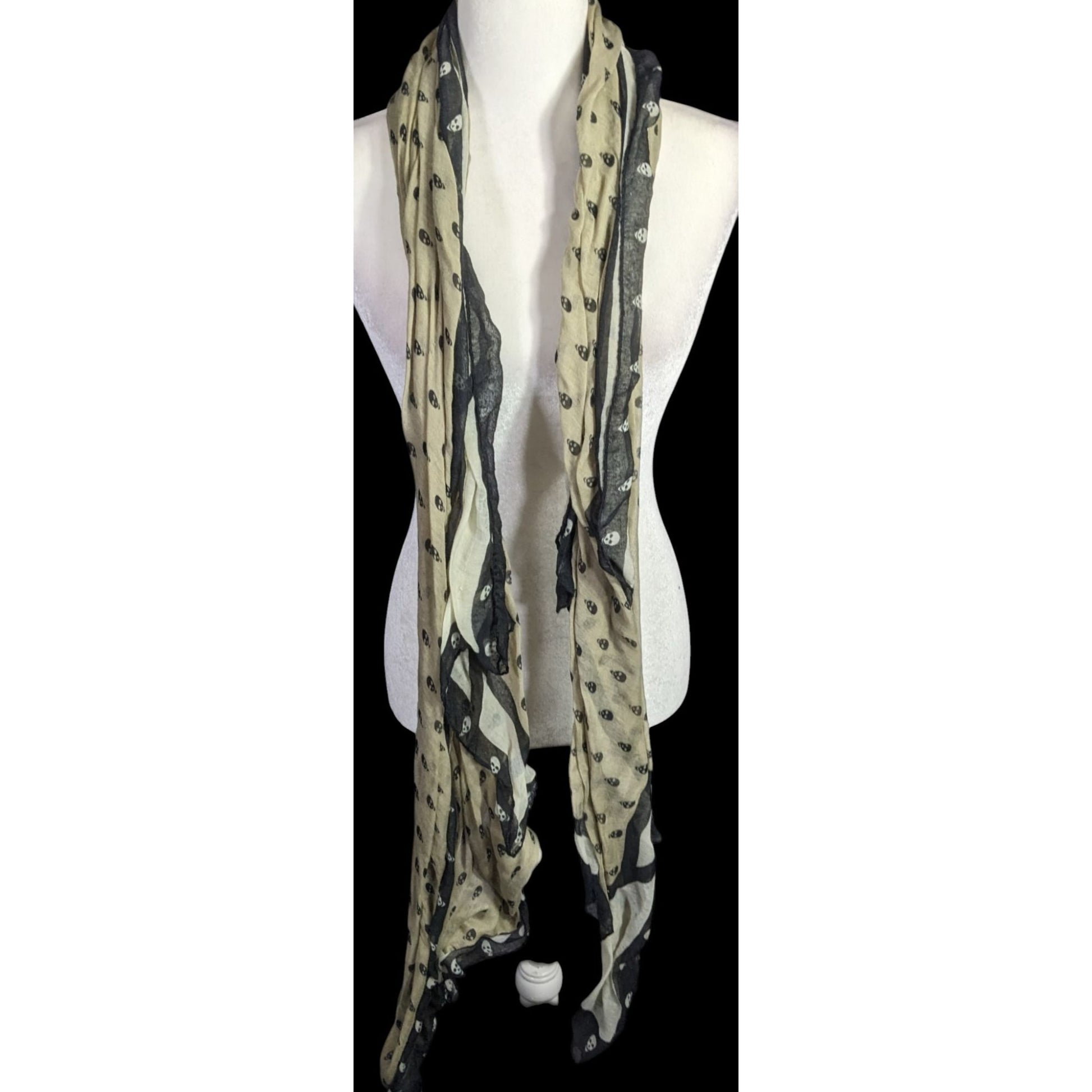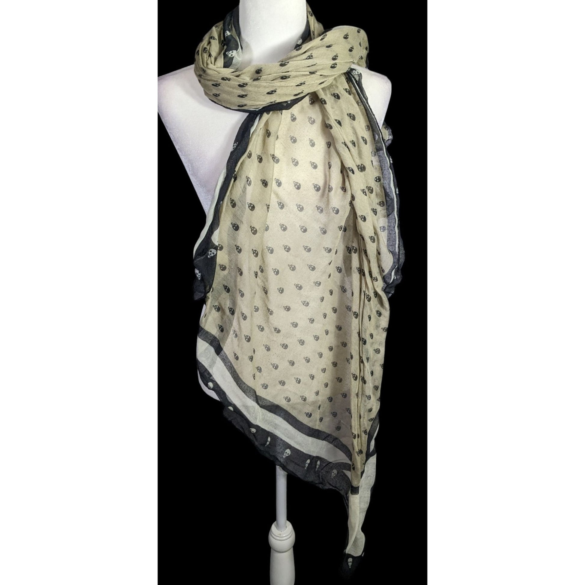 Gothic Skull Print Lightweight Beige Scarf With Black Accents 77"x41" Soft Fabric