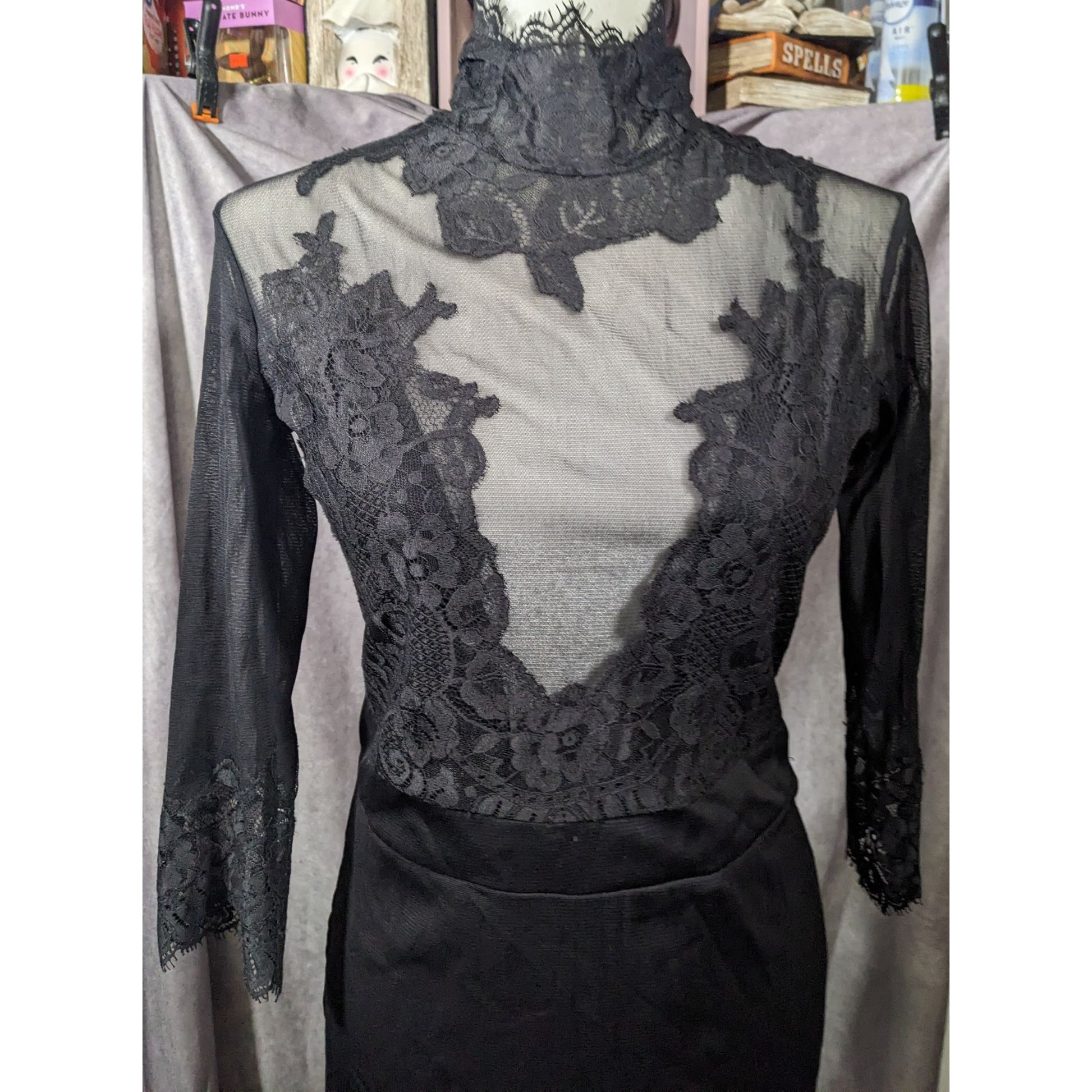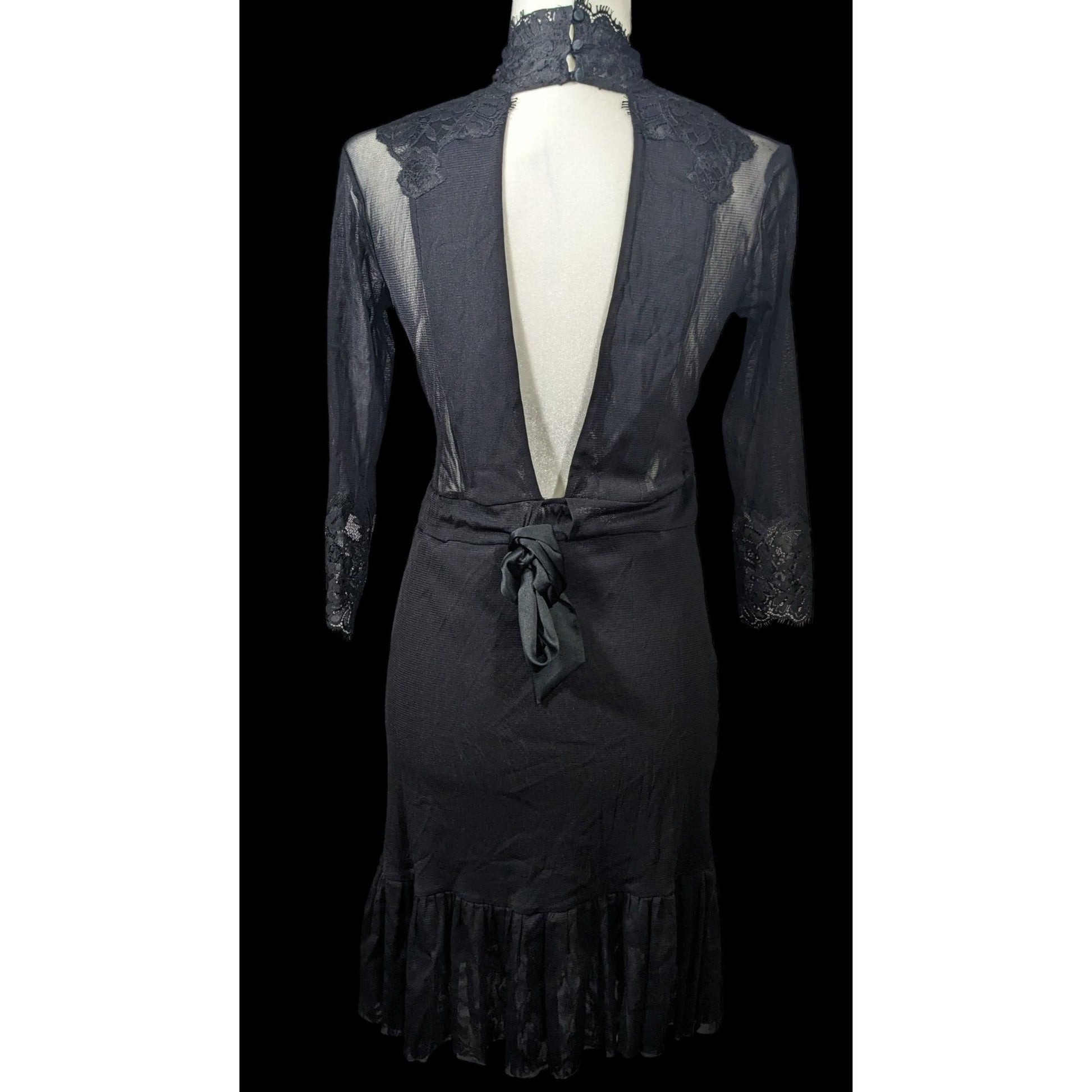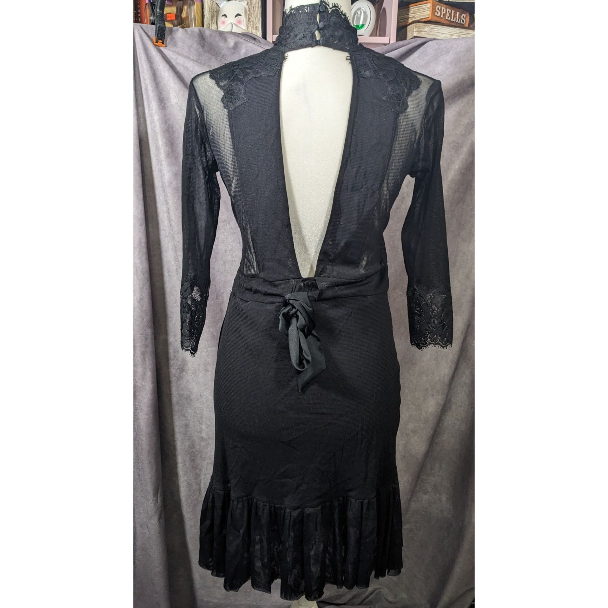 HAH Gothic Floral Lace Open Back Dress With Bow Accent Size Medium
