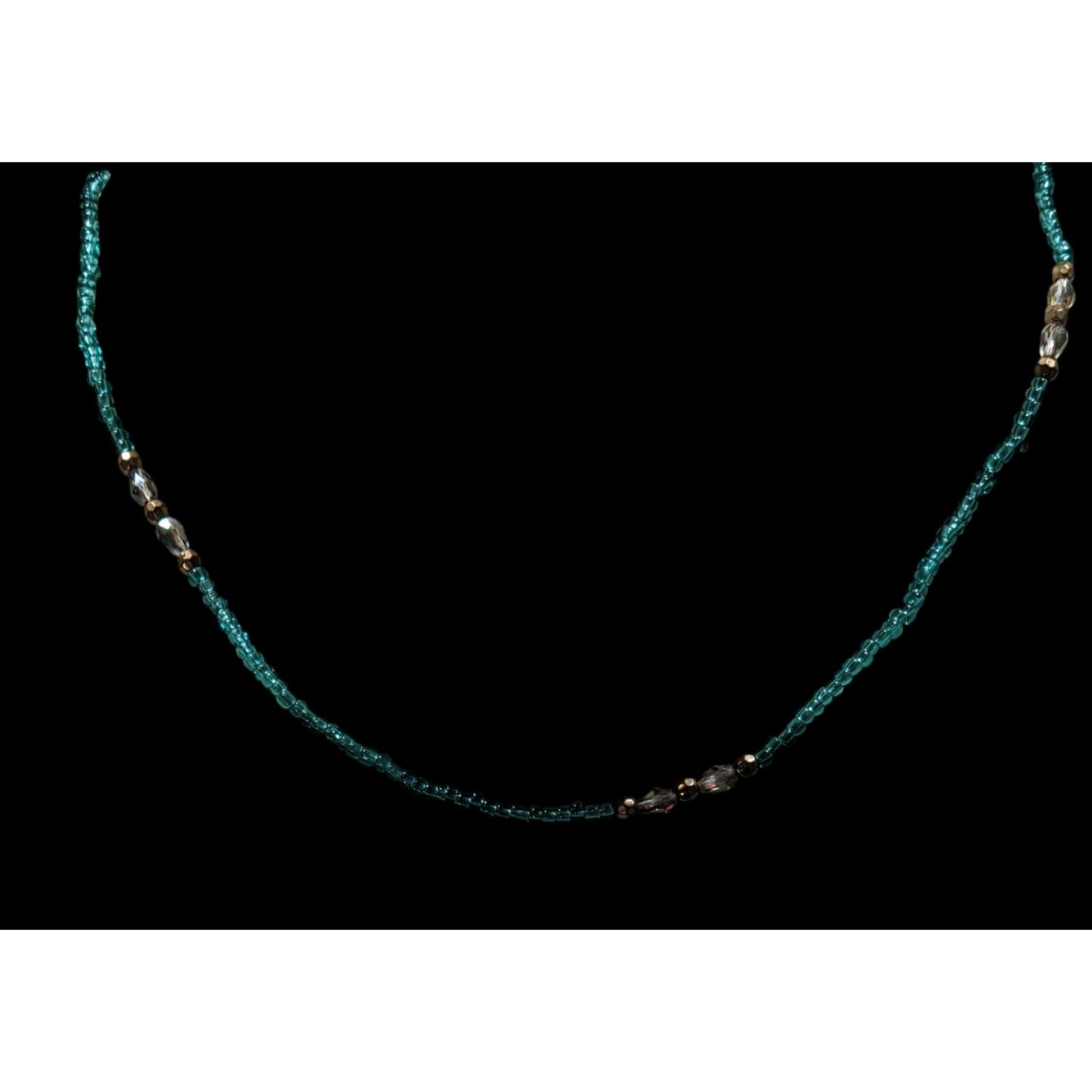 This elegant handmade necklace features striking blue glass beads with complementary gold tone accents, perfect for adding a touch of sophistication to any outfit. Ideal for both casual and formal occasions.