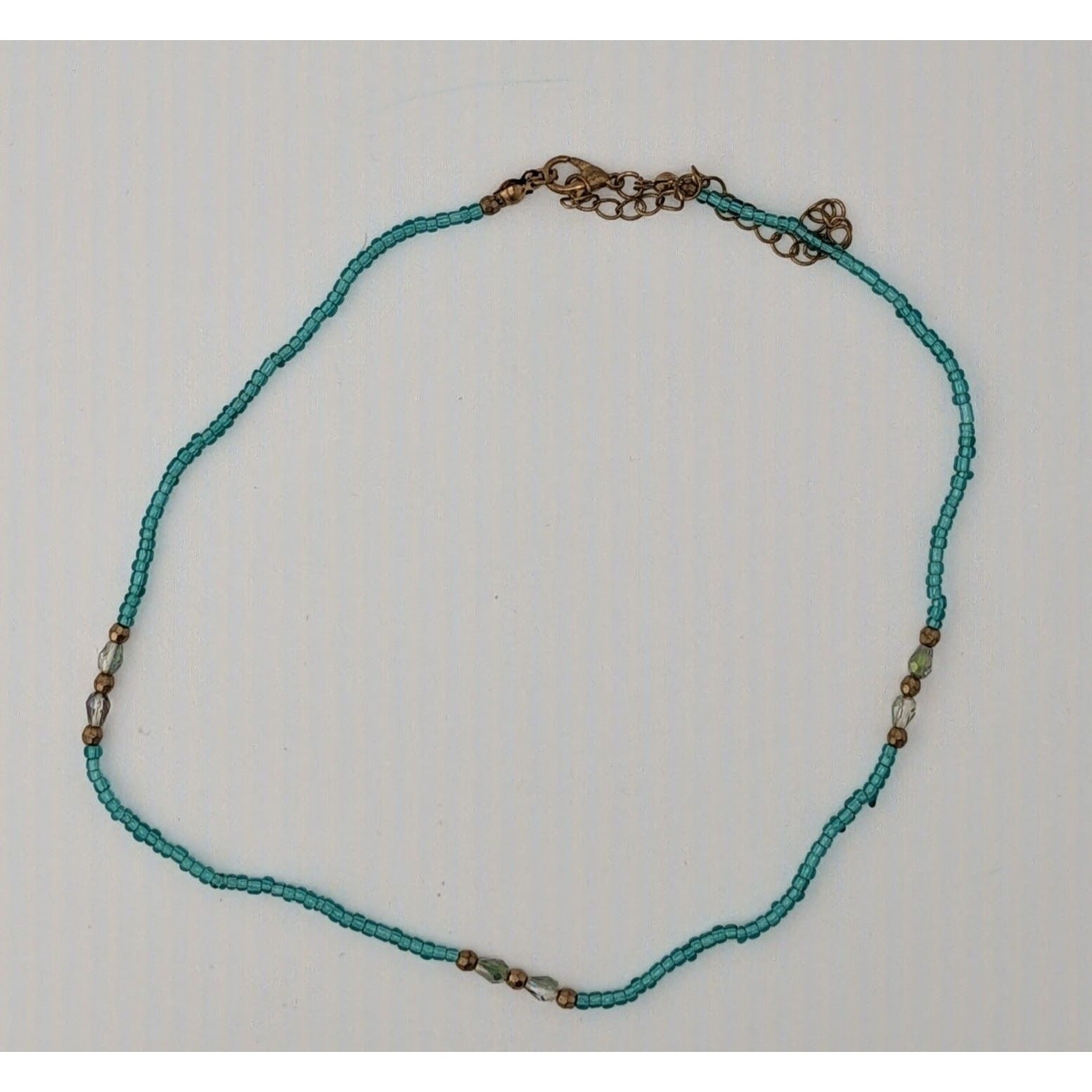 Handmade Blue Glass Beaded Necklace With Gold Tone Accents