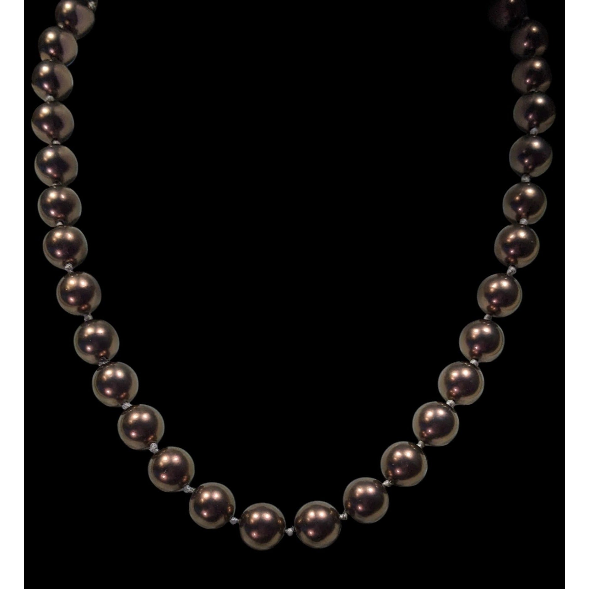 A strand of chocolate-brown pearls whispers elegance with every turn. Secured with a soft pink satin ribbon, it promises a timeless, graceful allure.