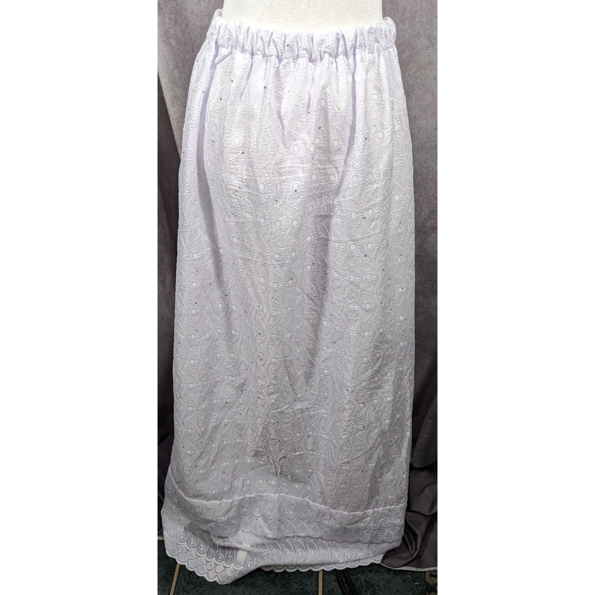 Handmade Floral Embroidered White With Purple Tint Maxi Skirt