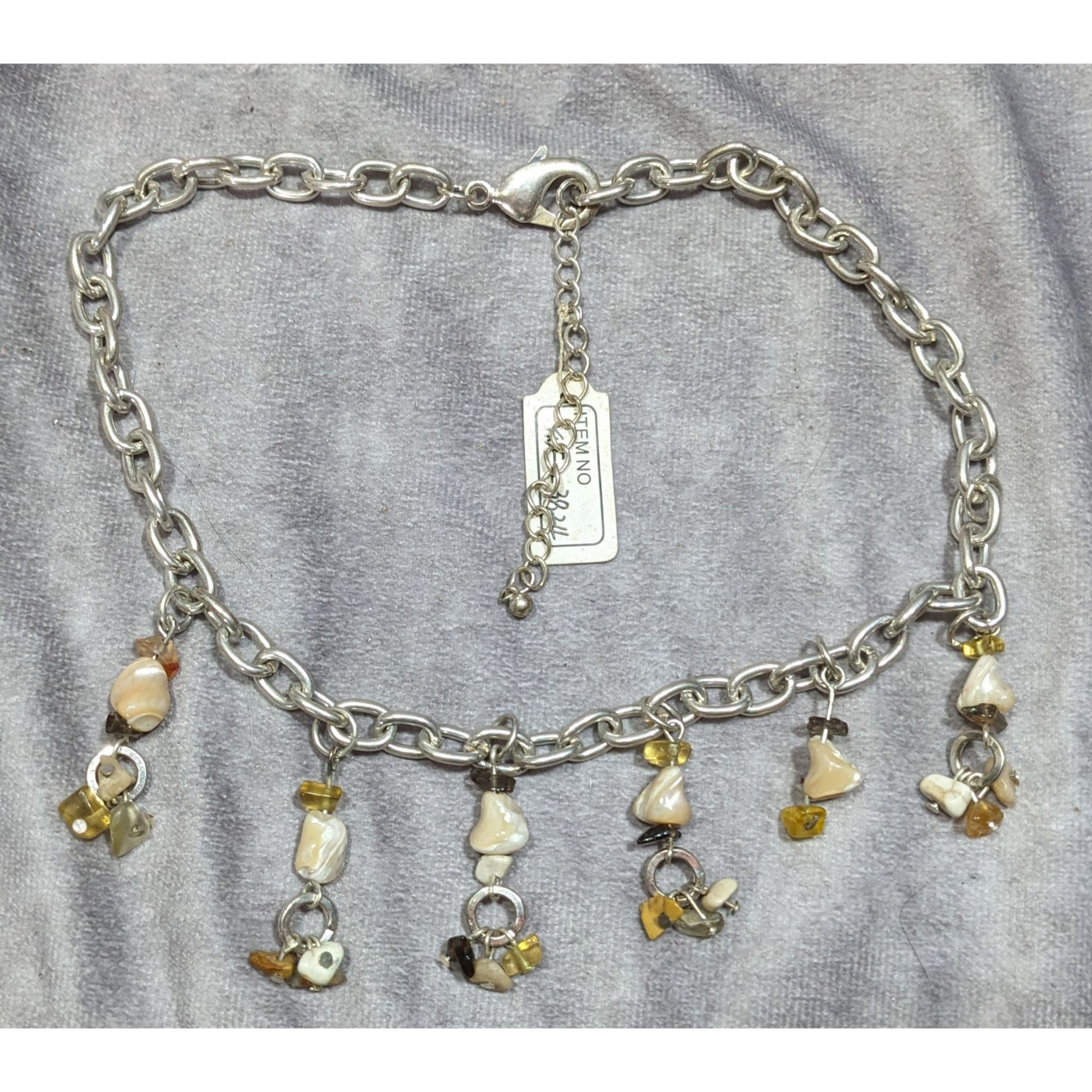 Handmade Gemstone Chip Fringe Necklace On Silver Tone Chain