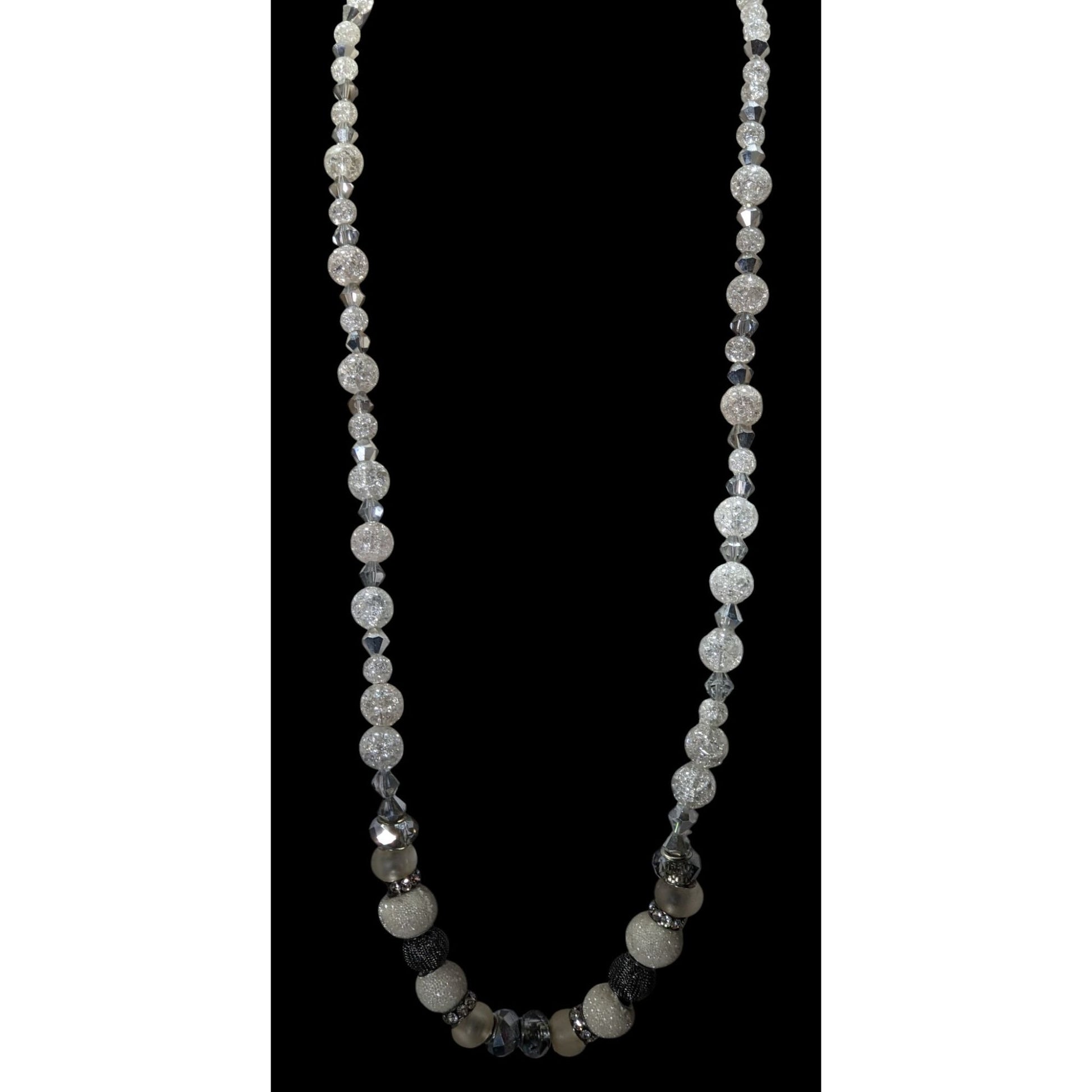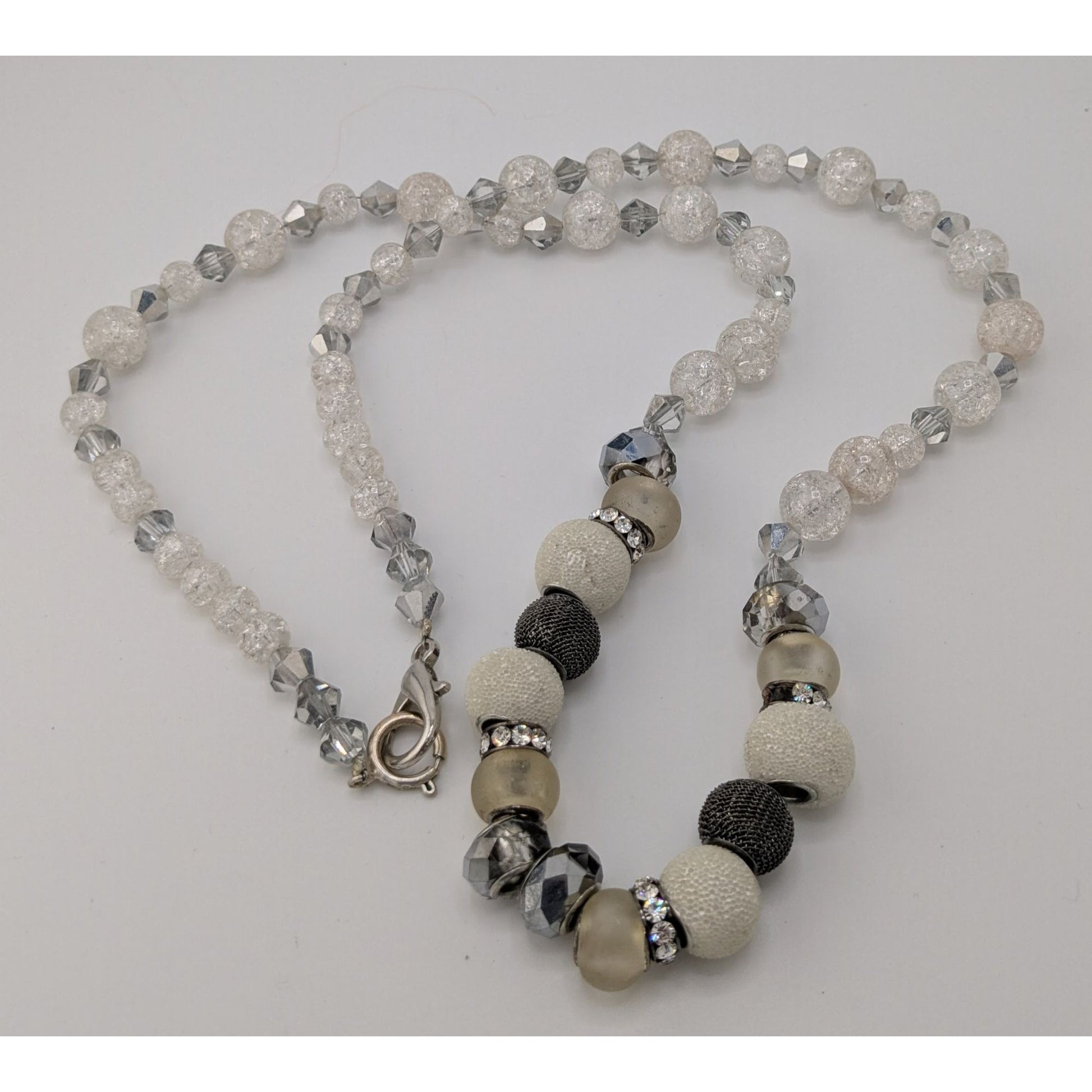 Handmade Glam White And Silver Tone Glass And Acrylic Necklace