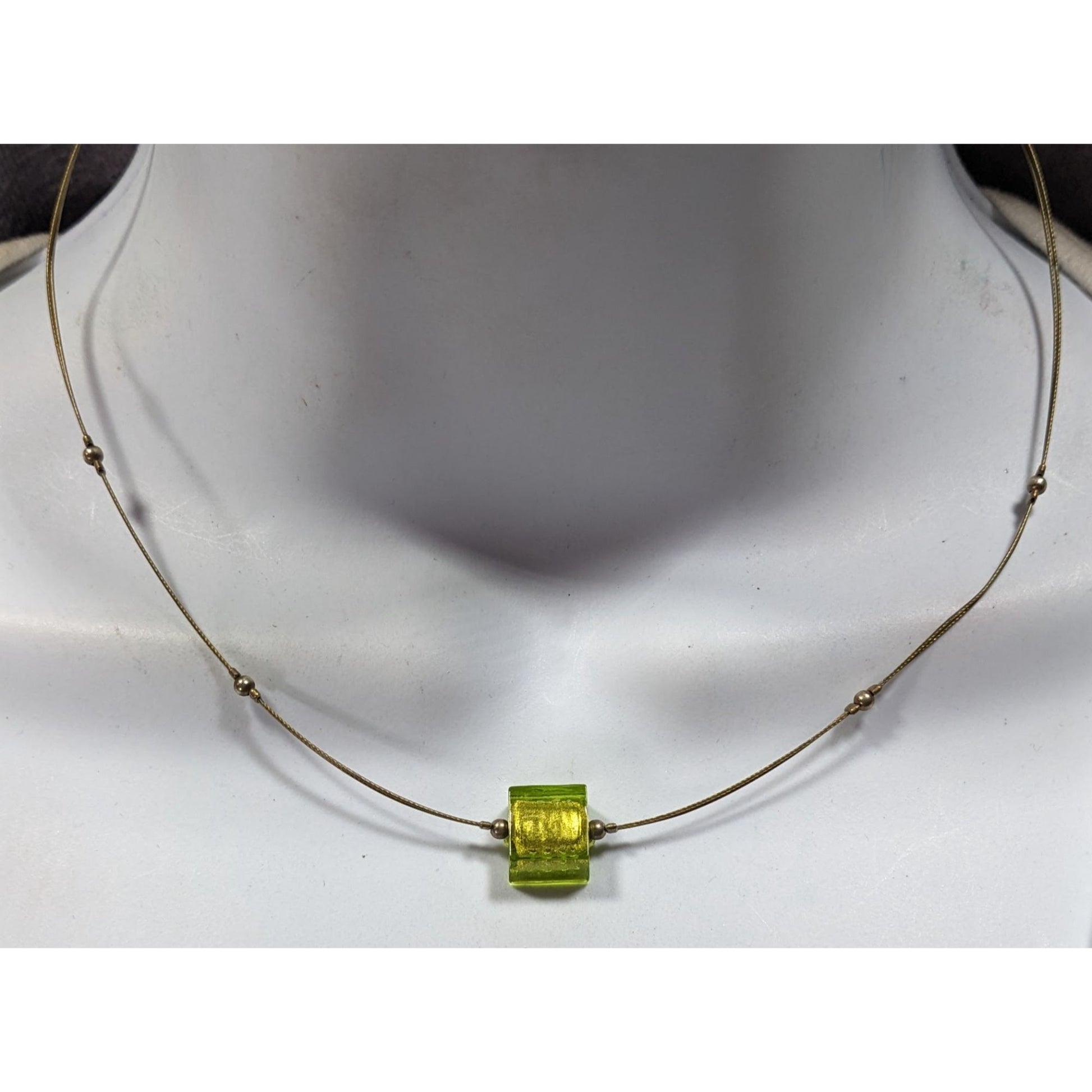 This elegant minimalist necklace features a handmade green glass cube, perfect for adding a touch of sophistication to any outfit. Ideal for everyday wear or special occasions.