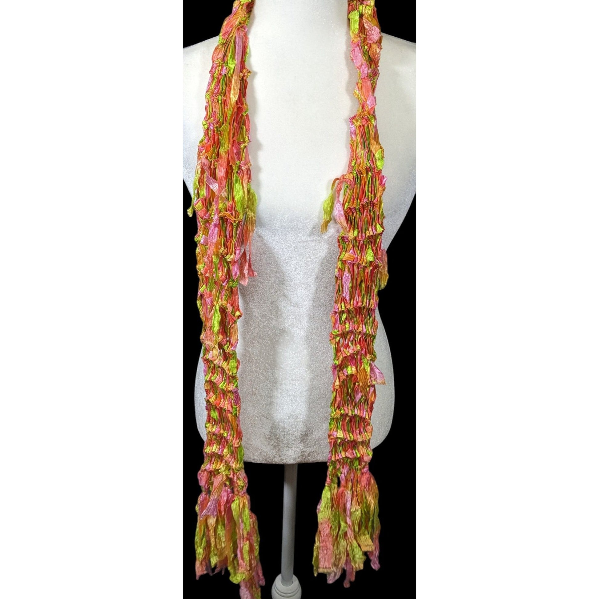 Handmade Neon Rainbow Abstract Open Knit Festival Scarf