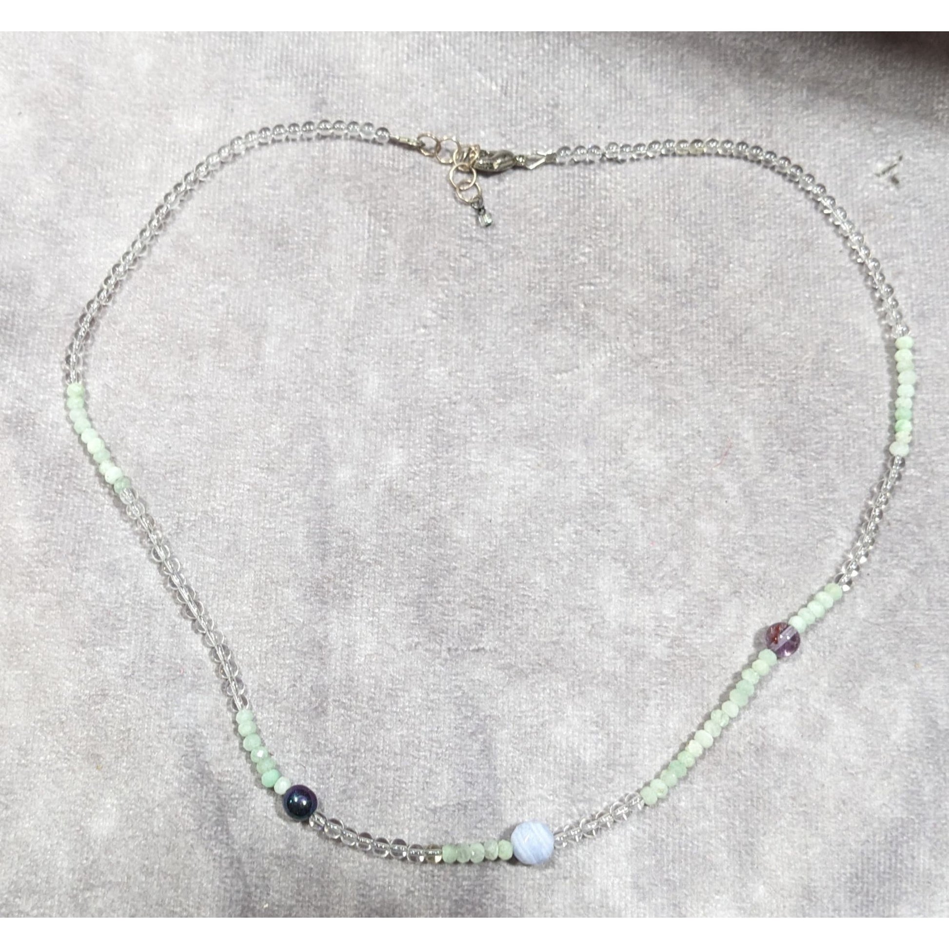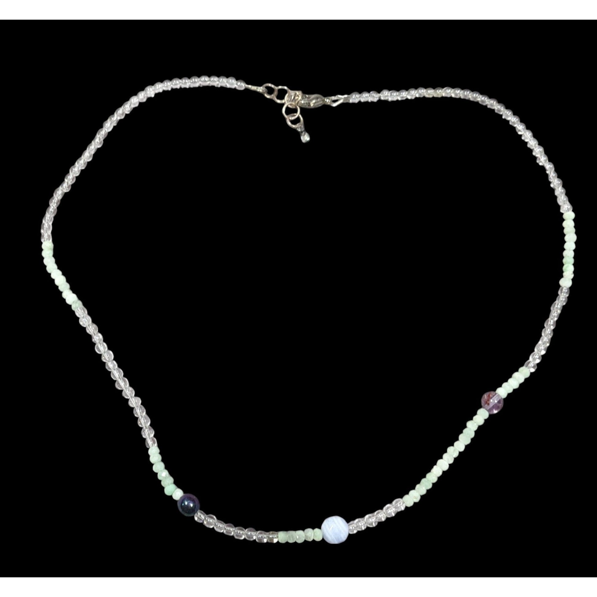 Enhance your style with this exquisite handmade necklace featuring pastel glass and stone beads. Perfect for any occasion, it adds a touch of elegance and uniqueness to your outfit.