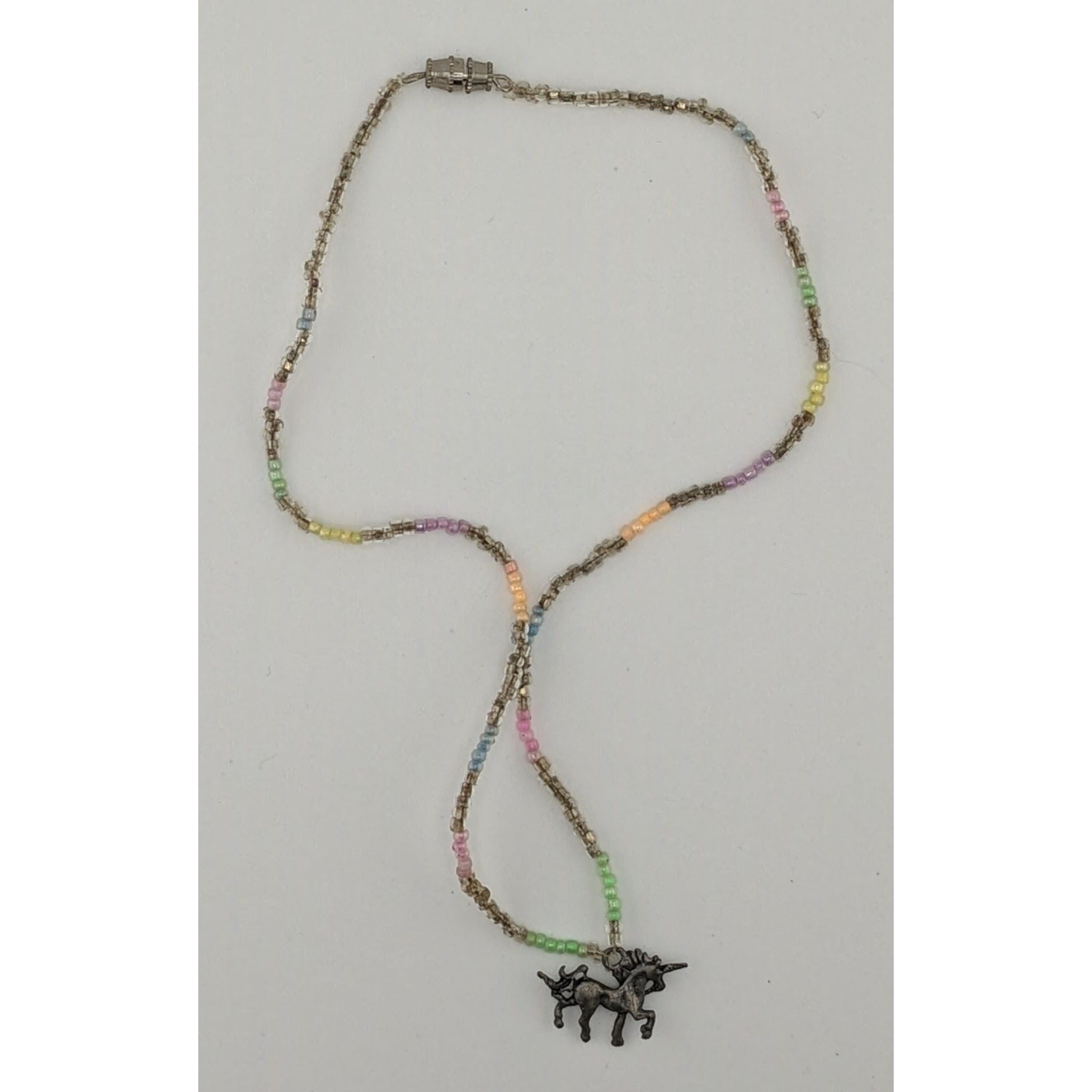 Handmade Pastel Glass Beaded Unicorn Pendant Necklace