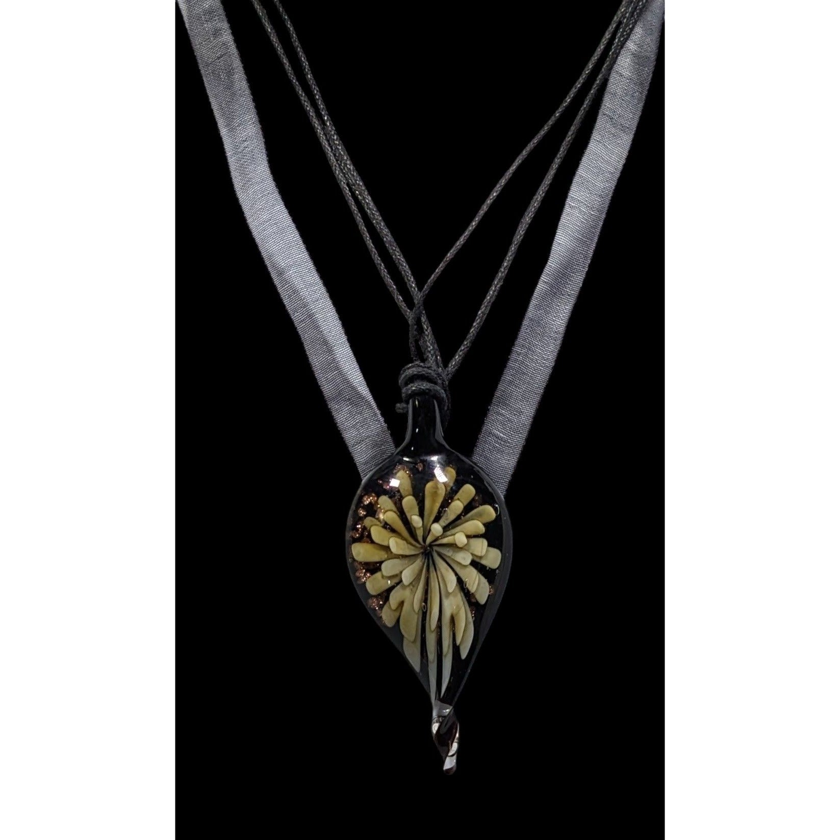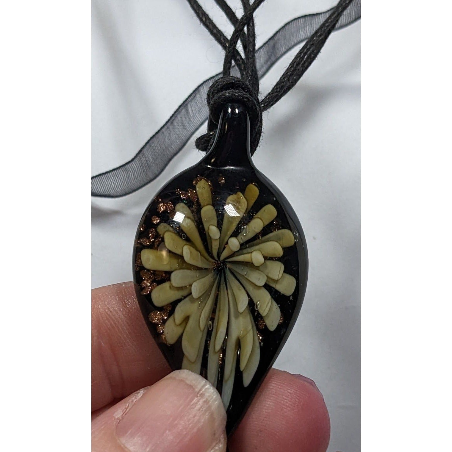 Handmade Teardrop Twist Glass Floral Pendant Necklace