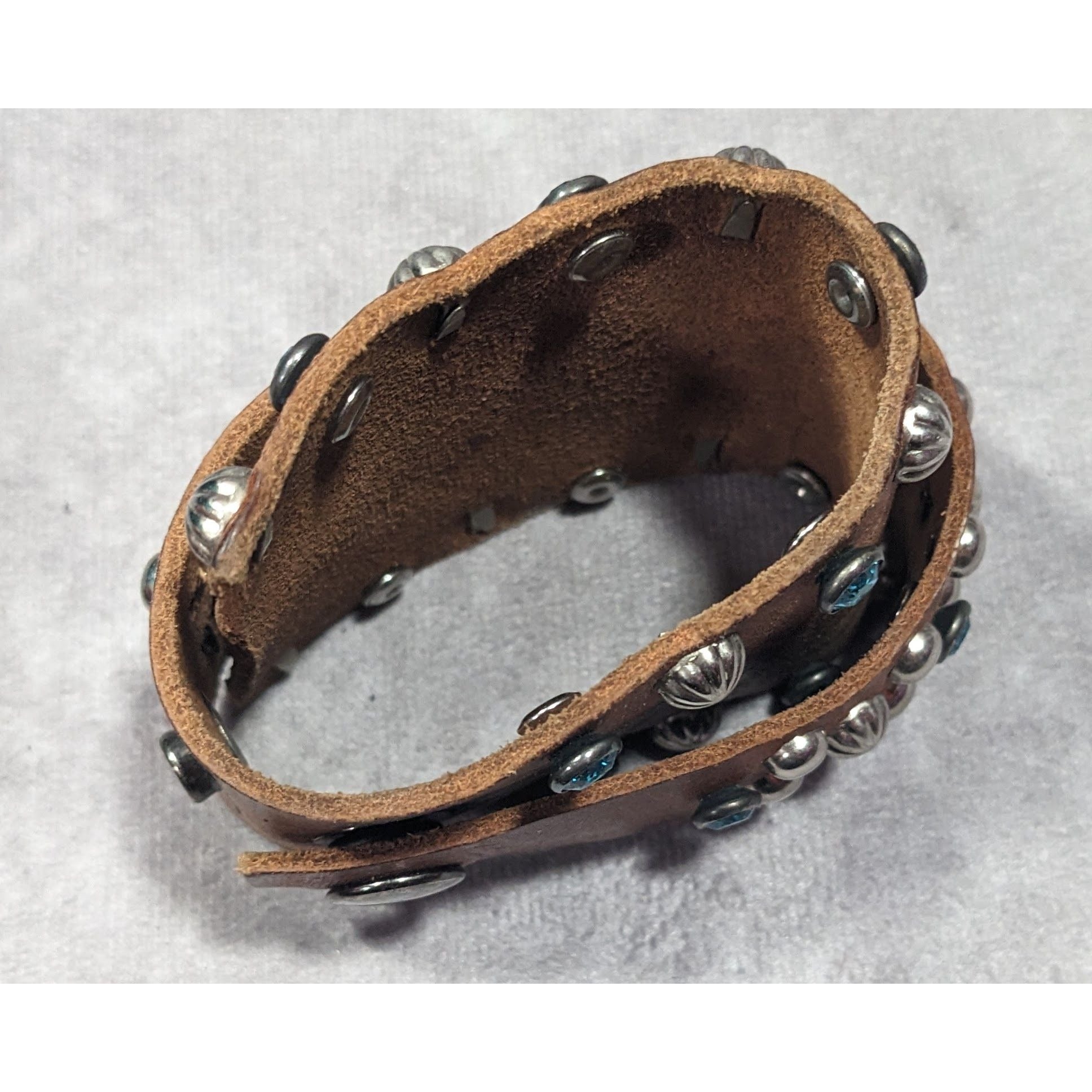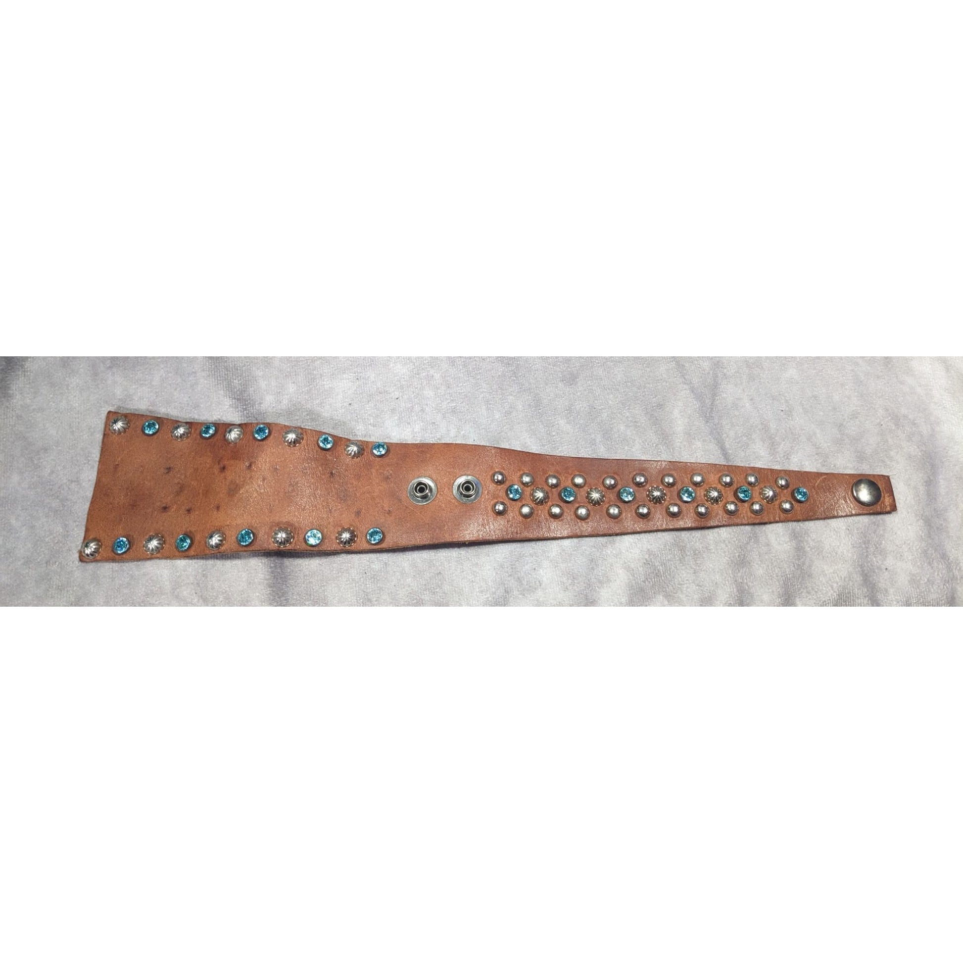 Enhance your style with this handmade Western glam leather wrap bracelet. Featuring studs and rhinestones, it adds a touch of elegance and edginess to any outfit. Perfect for casual or party wear.