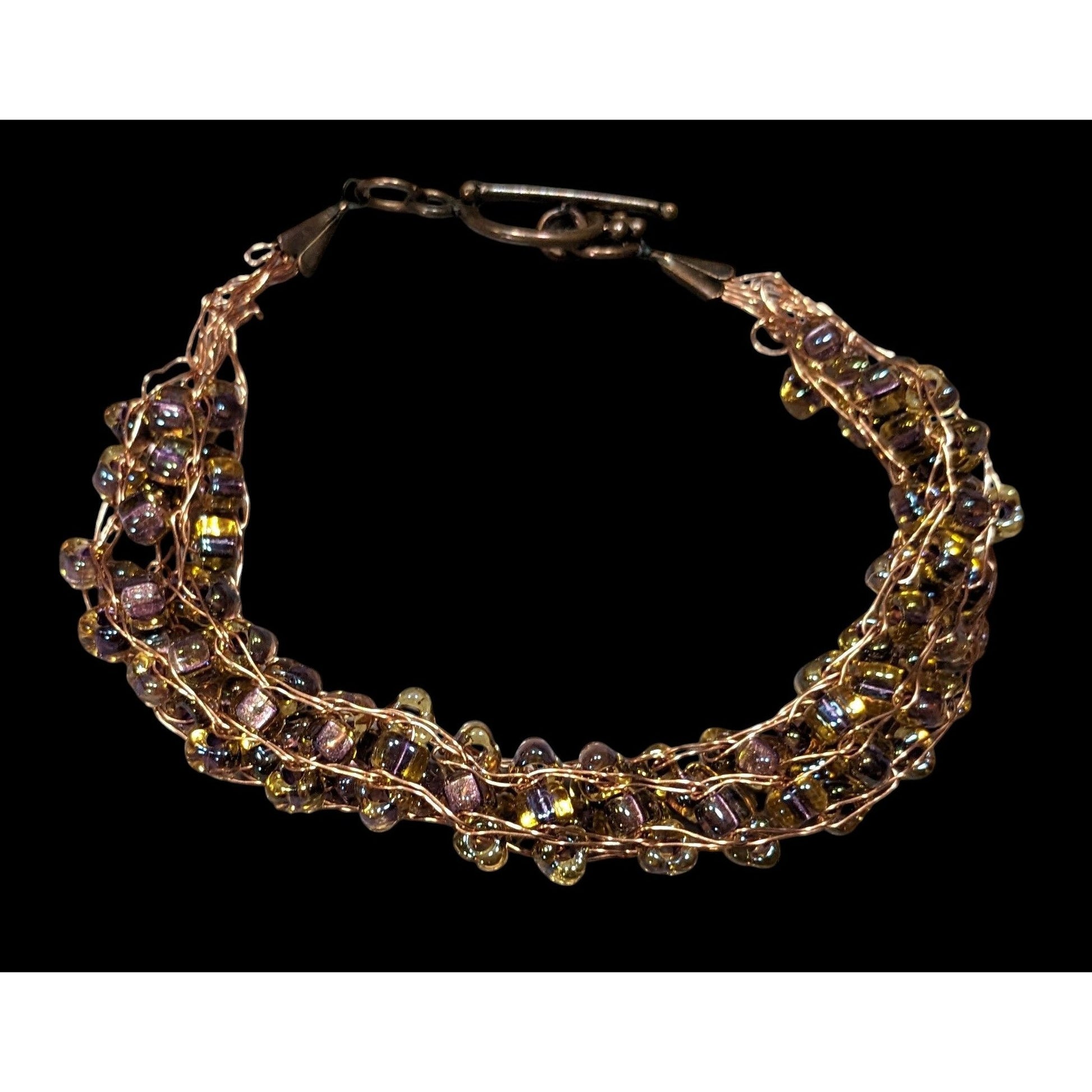 Handmade Whimsical Copper Wire And Glass Beaded Bracelet