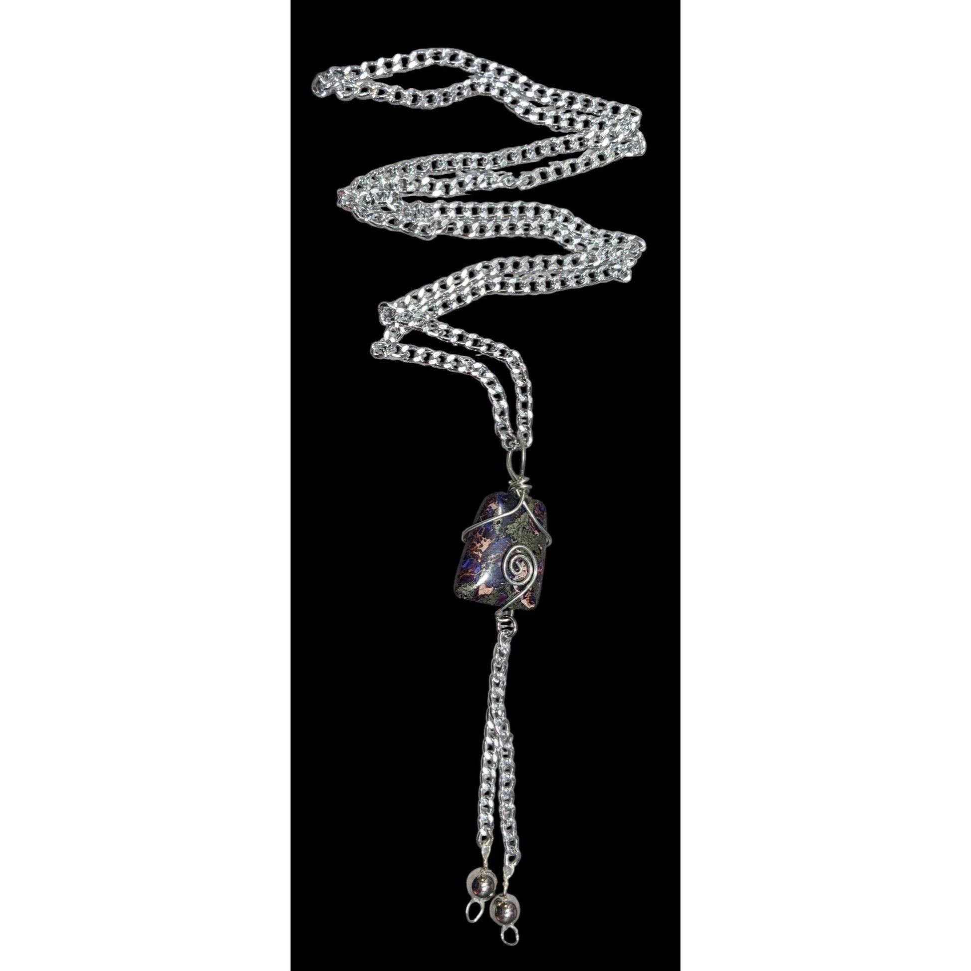 This exquisite handmade wire wrapped agate tassel necklace adds an elegant touch to any outfit. Perfect for any occasion, its unique design showcases the natural beauty of agate stones.