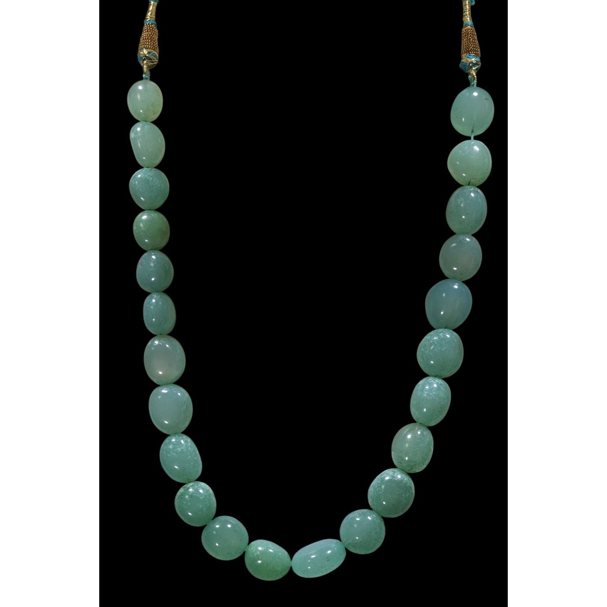 Elegant Indian bridal necklace featuring polished aventurine beads, perfect for special occasions. This exquisite piece adds a touch of traditional charm and sophistication to any bridal ensemble.