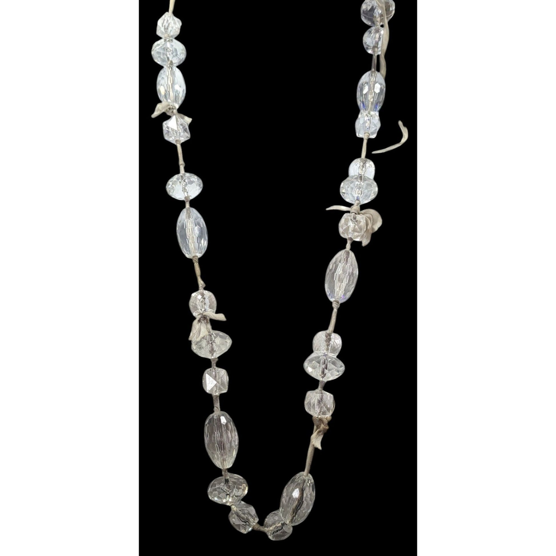 J.Crew Chunky Clear Beaded Grey Ribbon Station Necklace