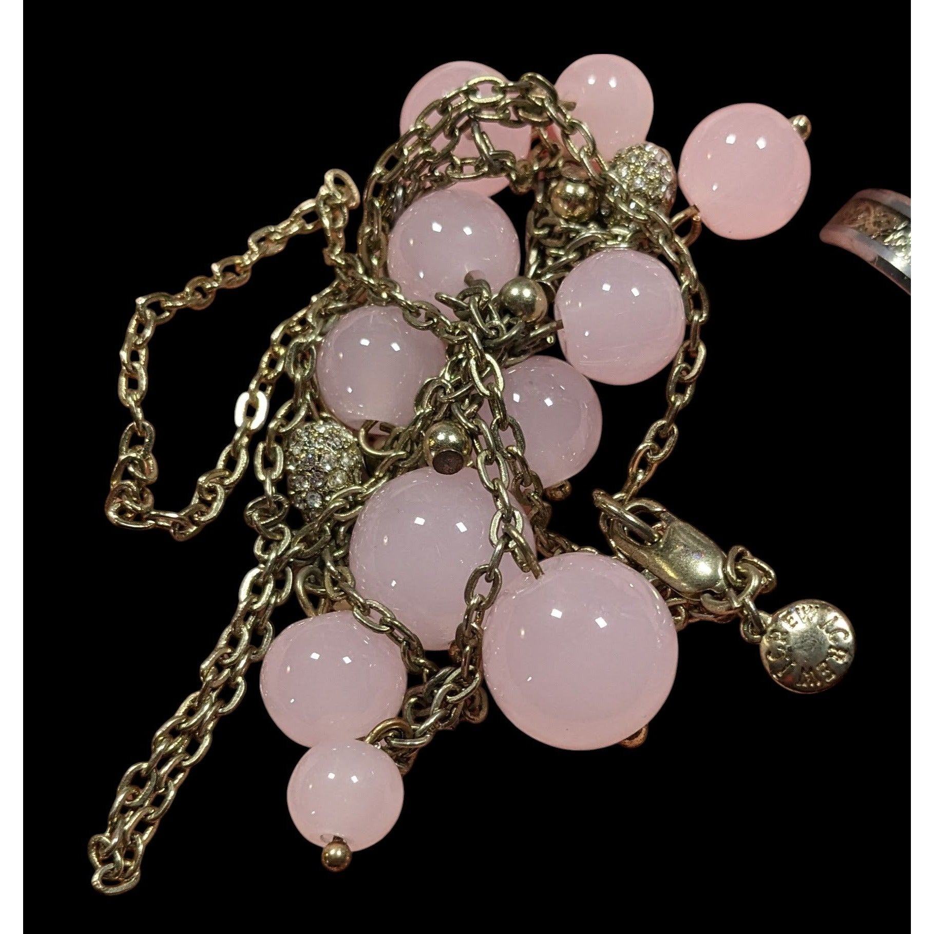 J.Crew Coquette Preppy Rose Quartz And Rhinestone Charm Necklace