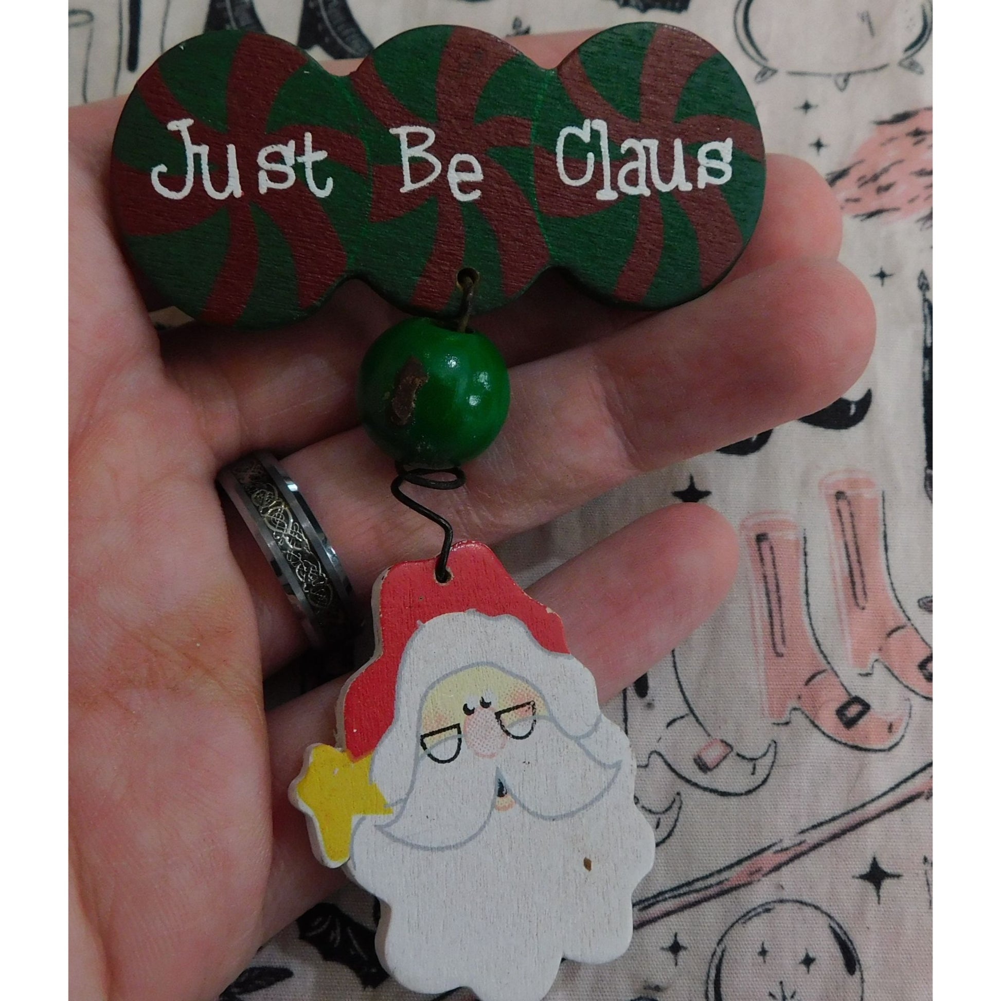 Just Be Clause Santa Christmas Painted Brooch
