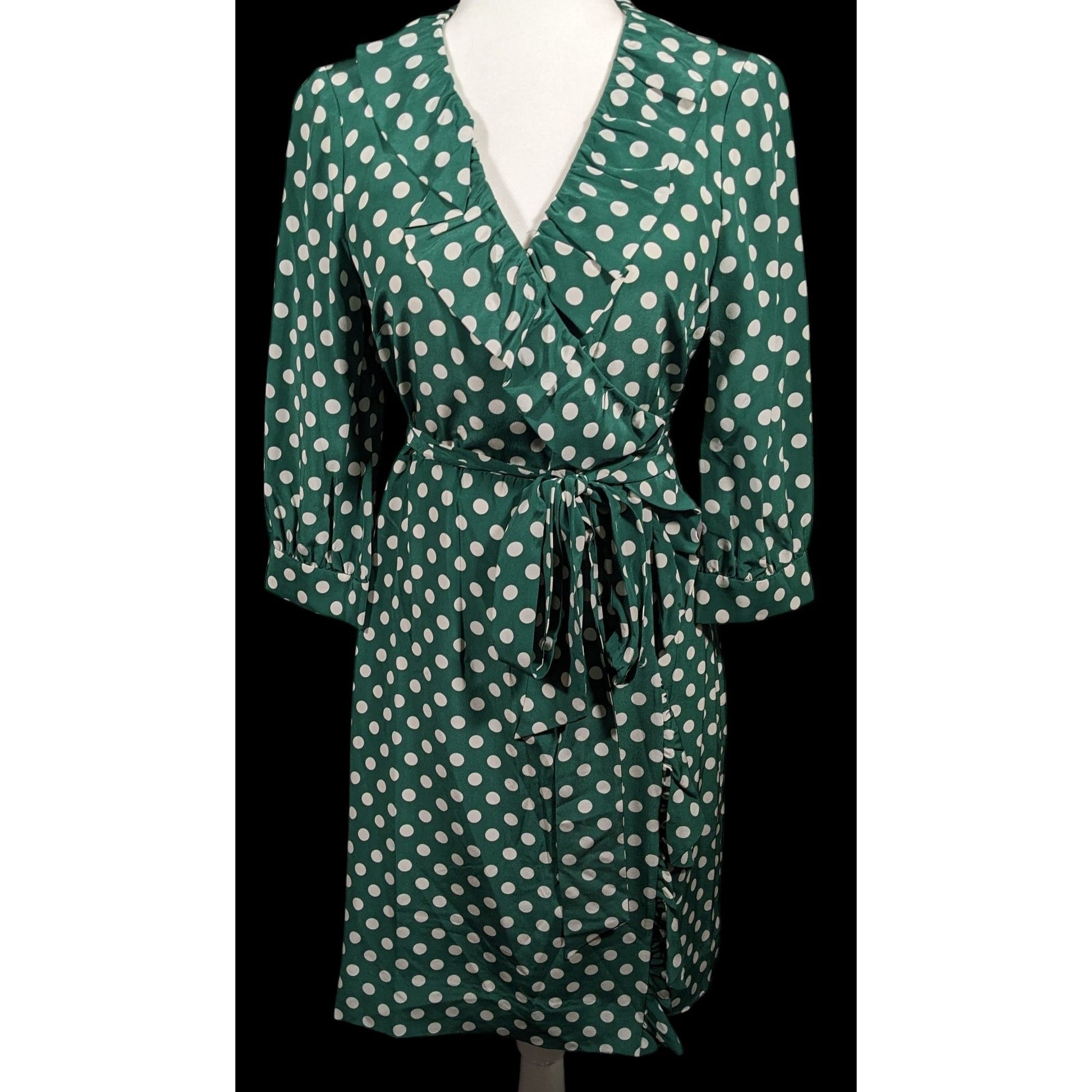 Kate Spade Daniella Silk Green And White Polka Dot Wrap Dress Size 6