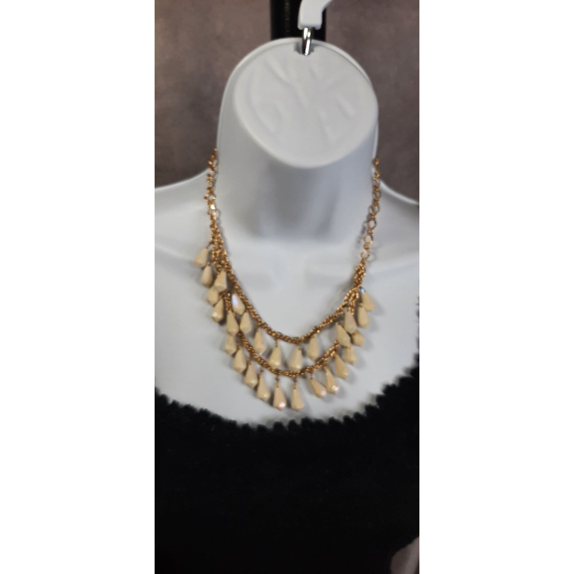 • Gold-tone chain with cream teardrop beads