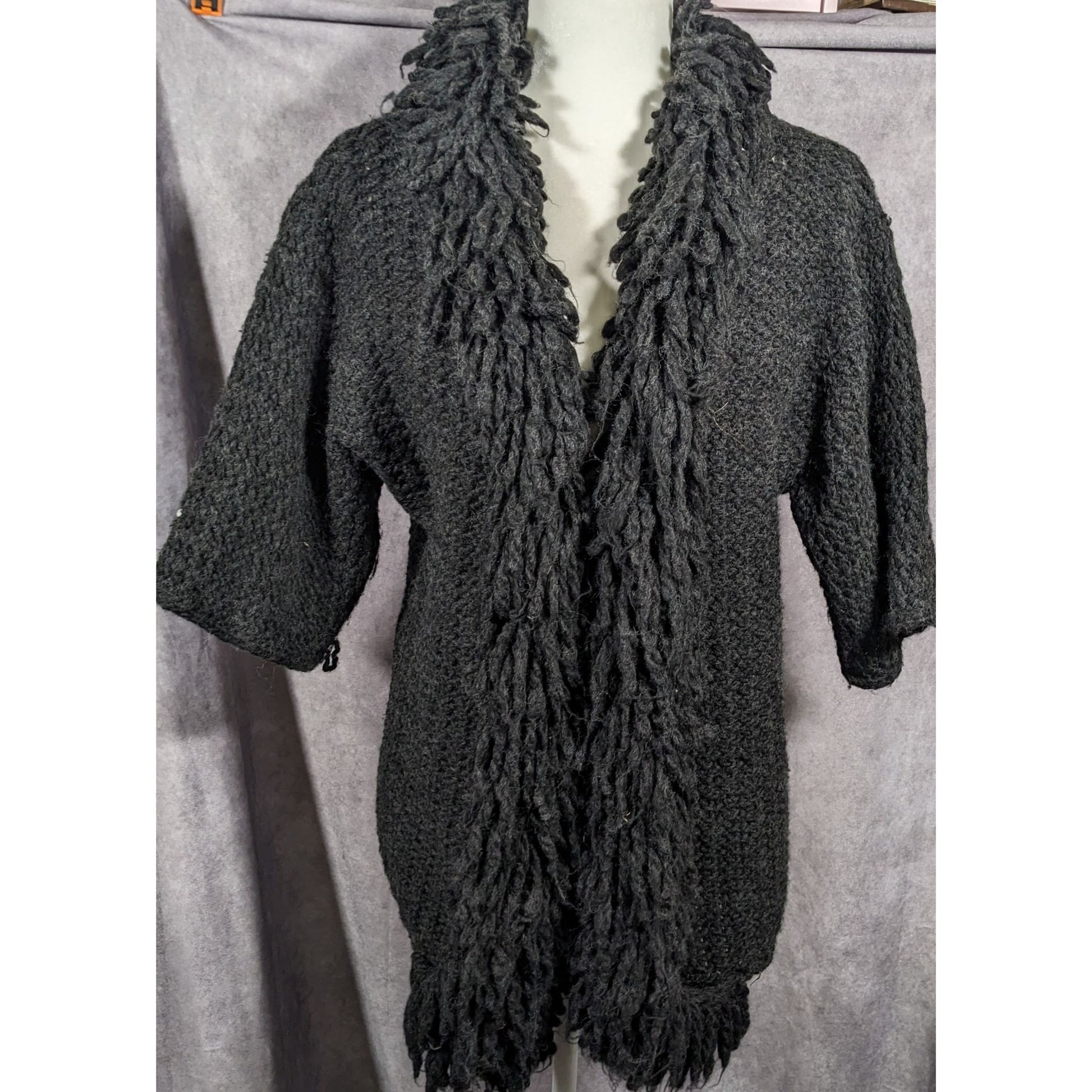 Kenar Italy Vintage Open Front Black Fringe Neck Cardigan Size Medium
