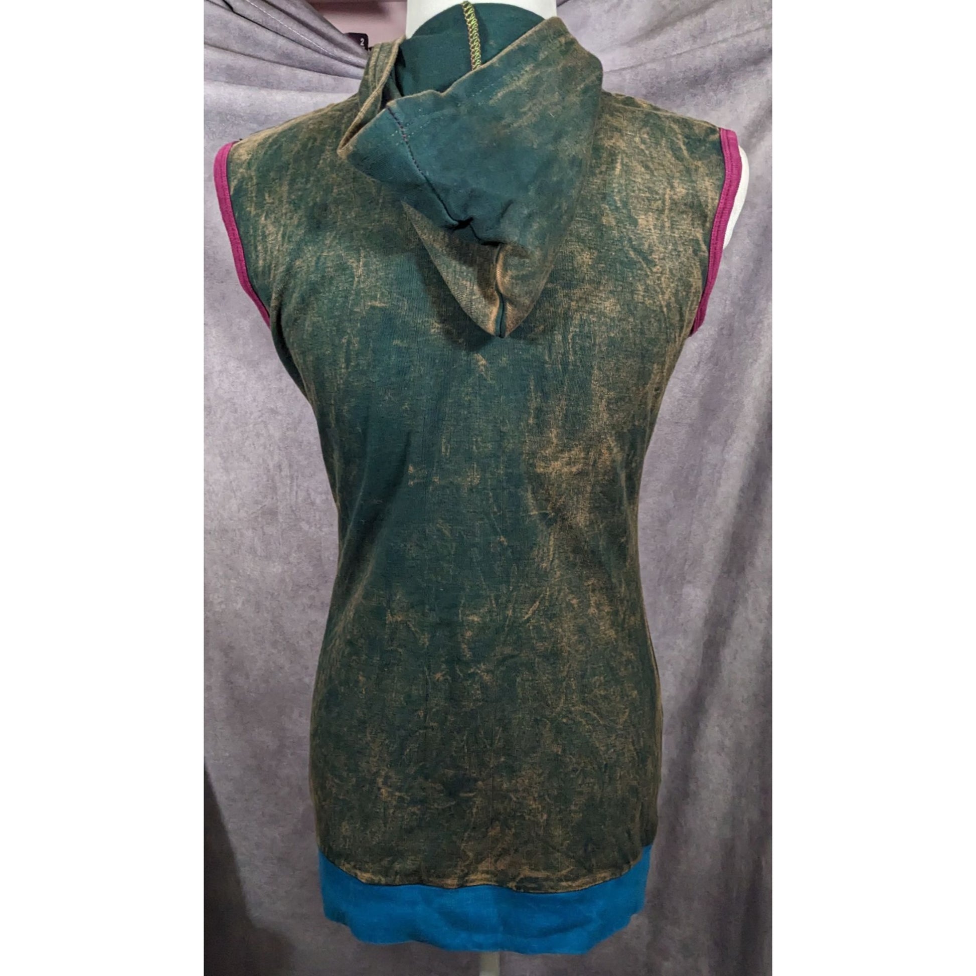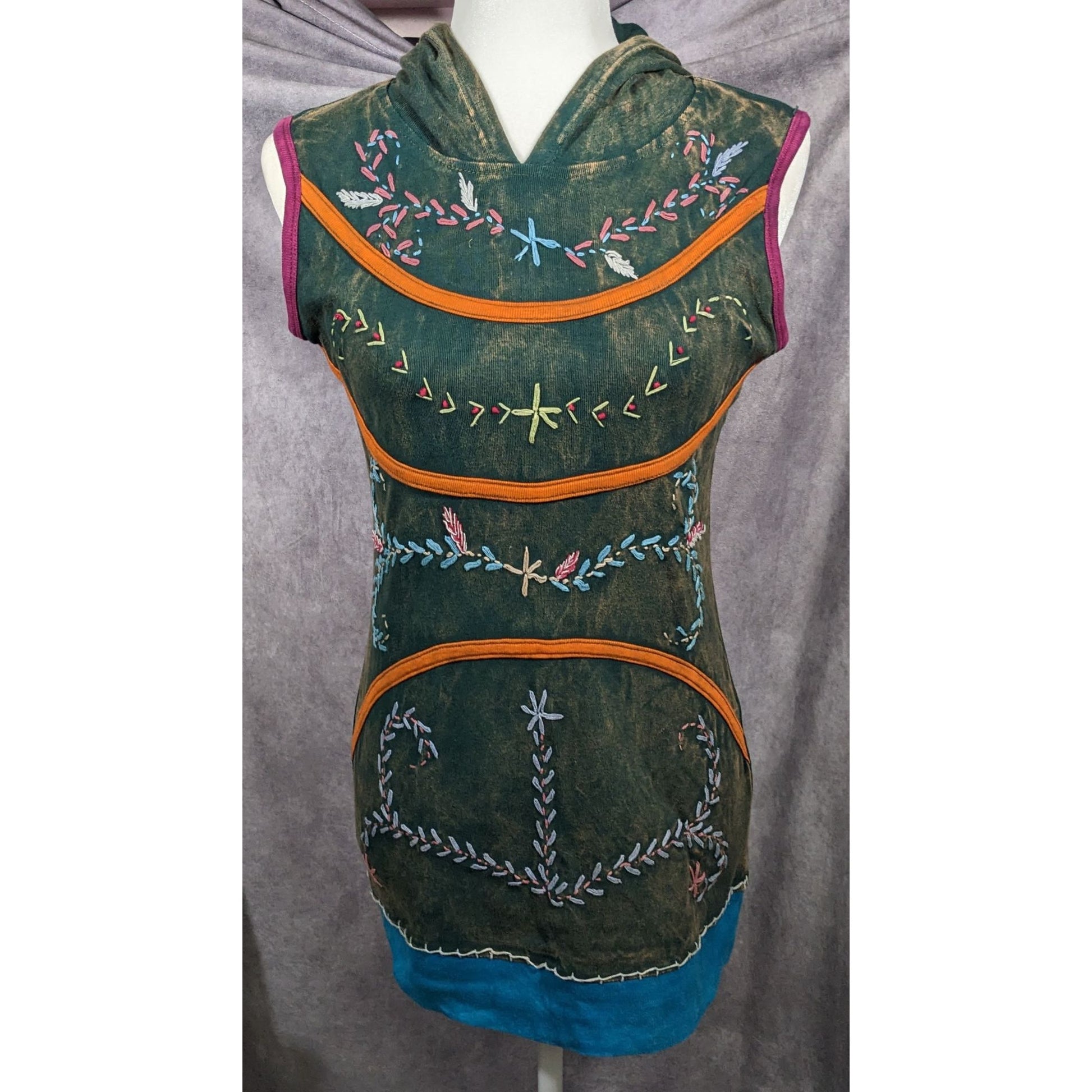 This whimsical cosplay dress features a floral elf design and a charming hood, perfect for fantasy events or themed parties. Available in size small, it offers a unique look for any elf enthusiast.