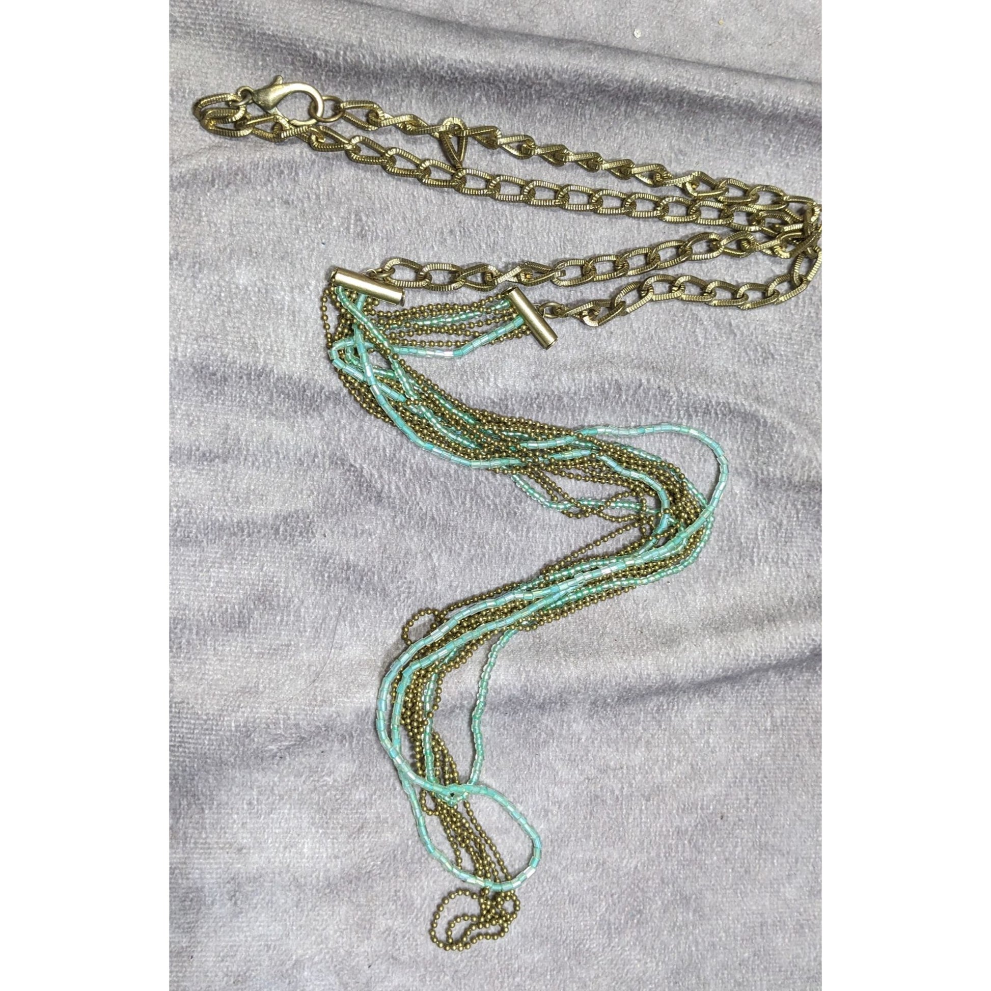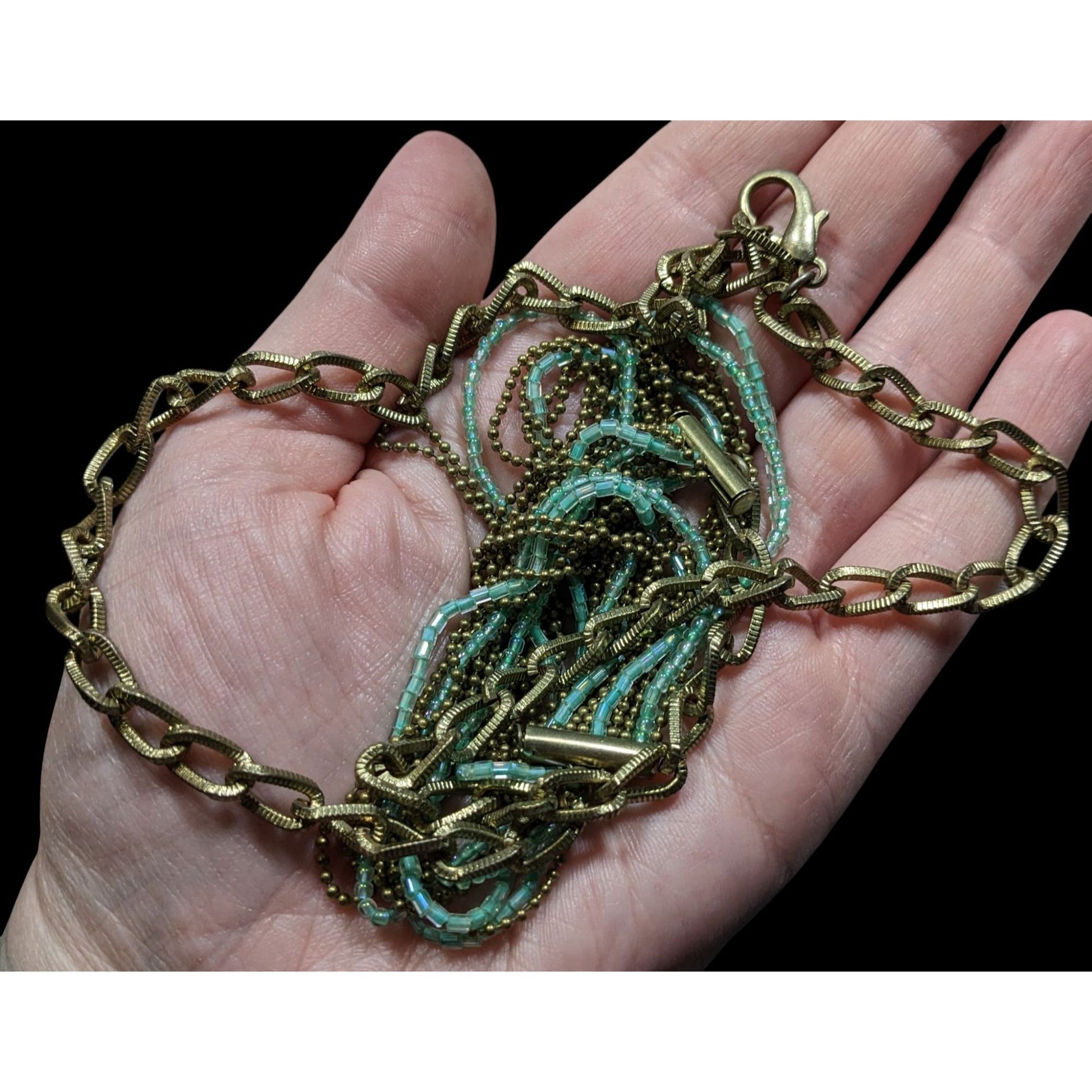 Layered Gold Tone & Aqua Chain Necklace With Multi-Strand Design & Lobster Clasp Closure
