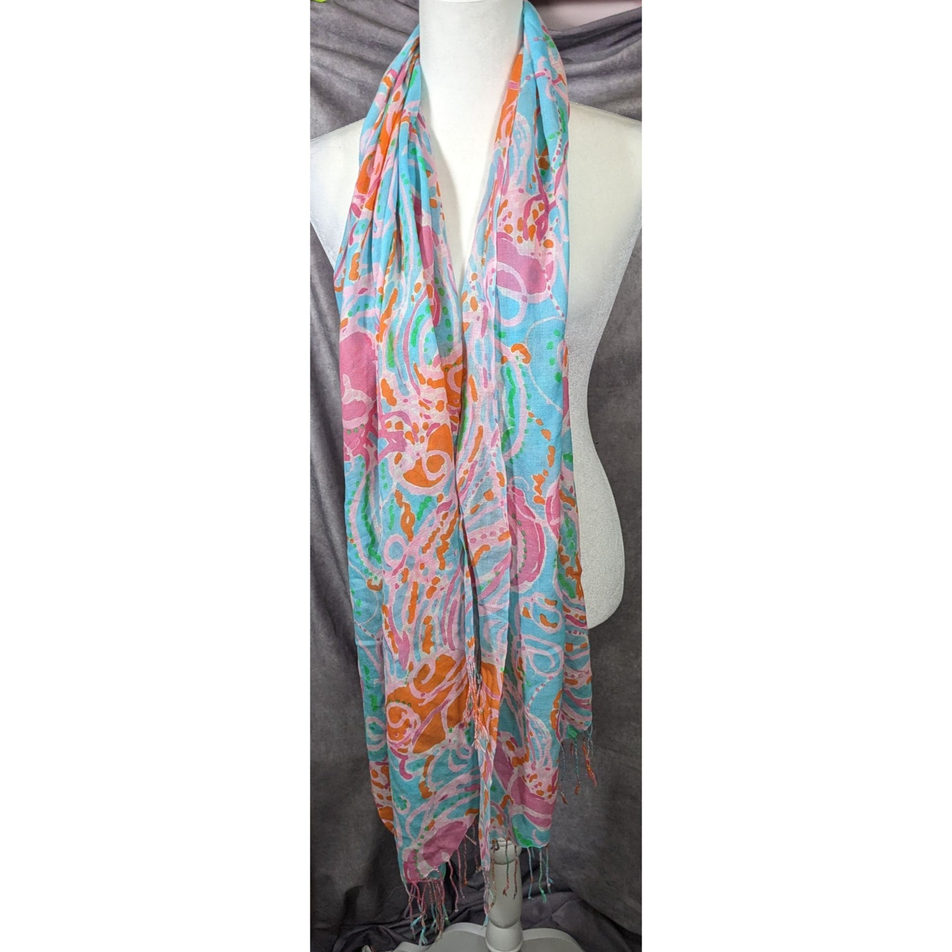 Lilly Pulitzer Jellies Pink Blue And Orange Jellyfish Scarf