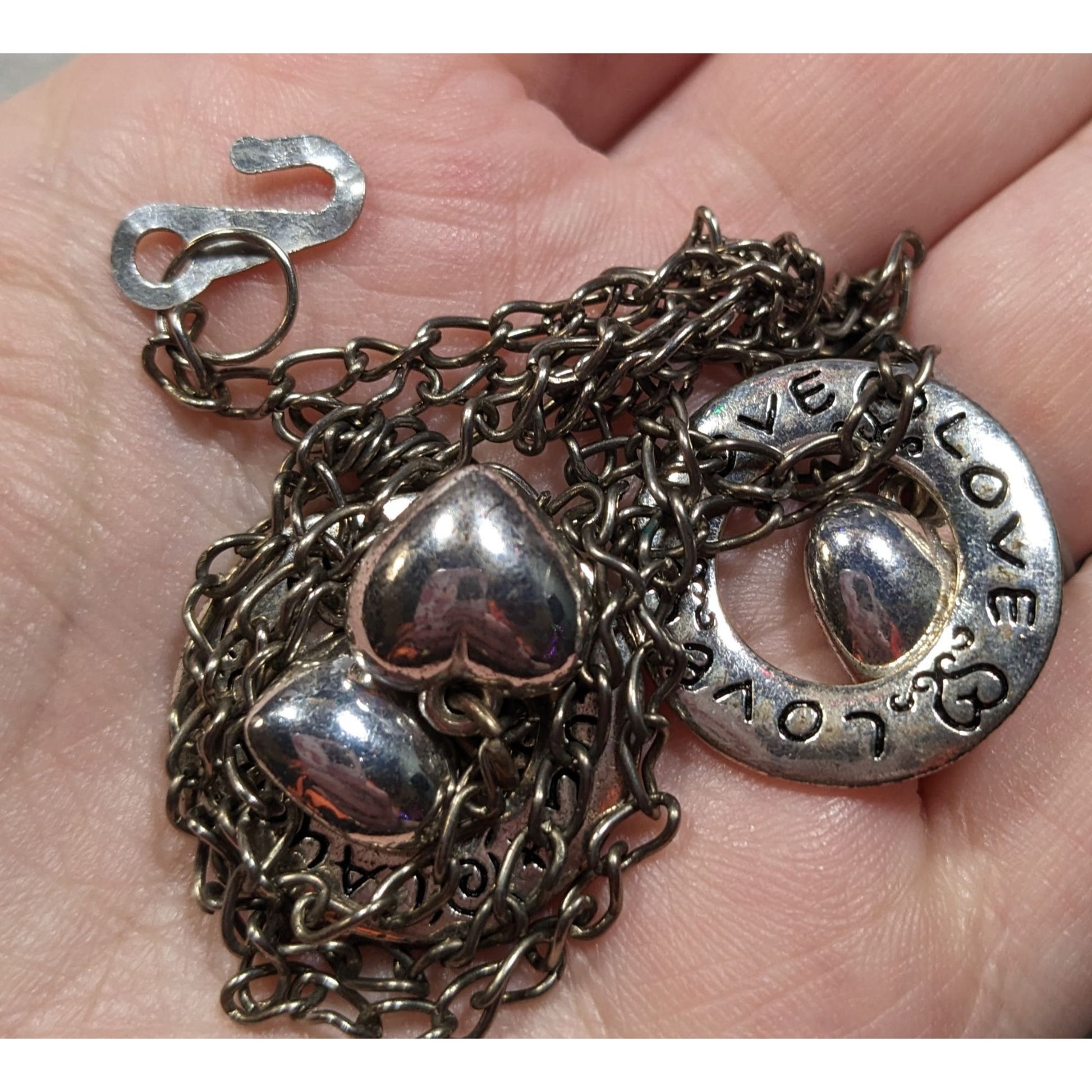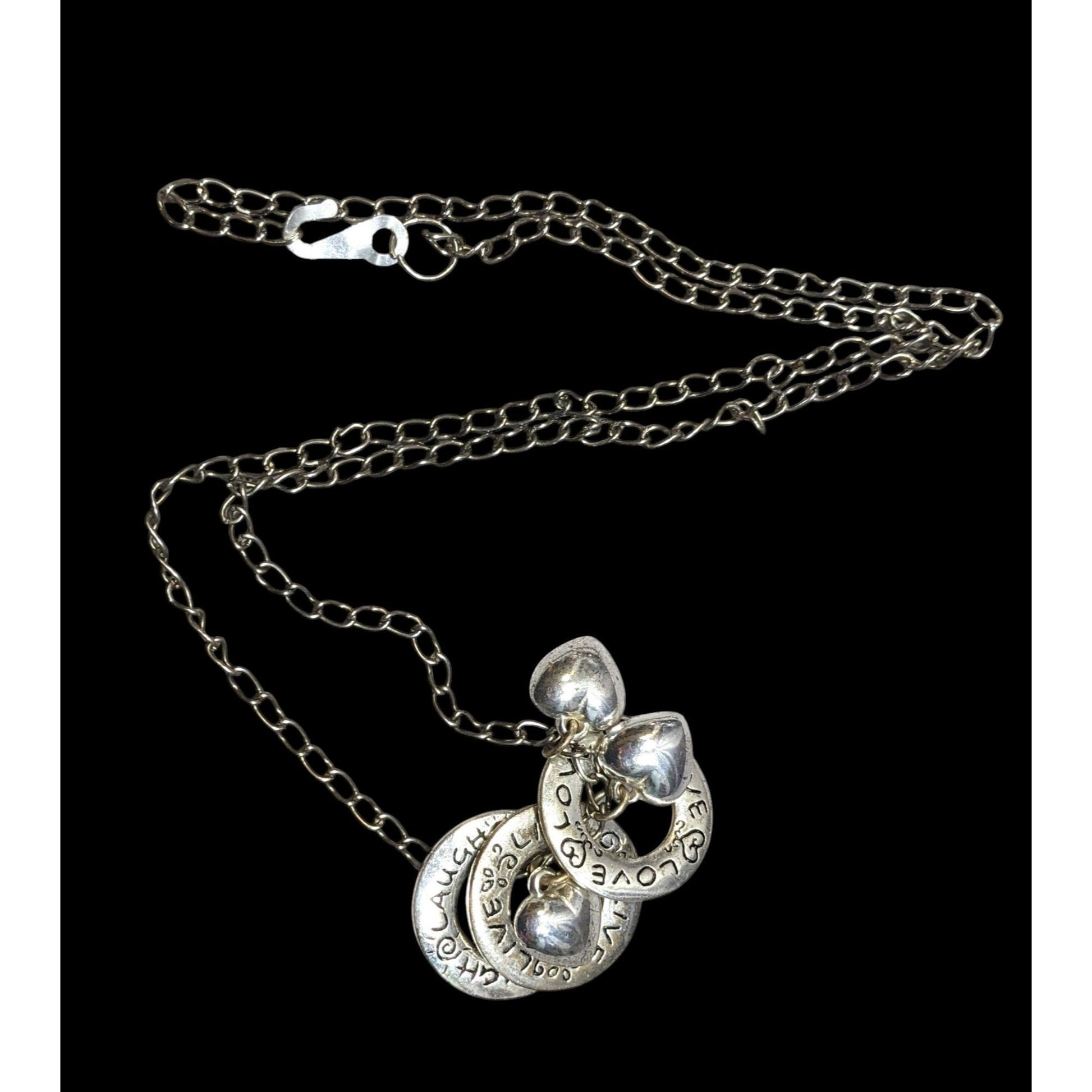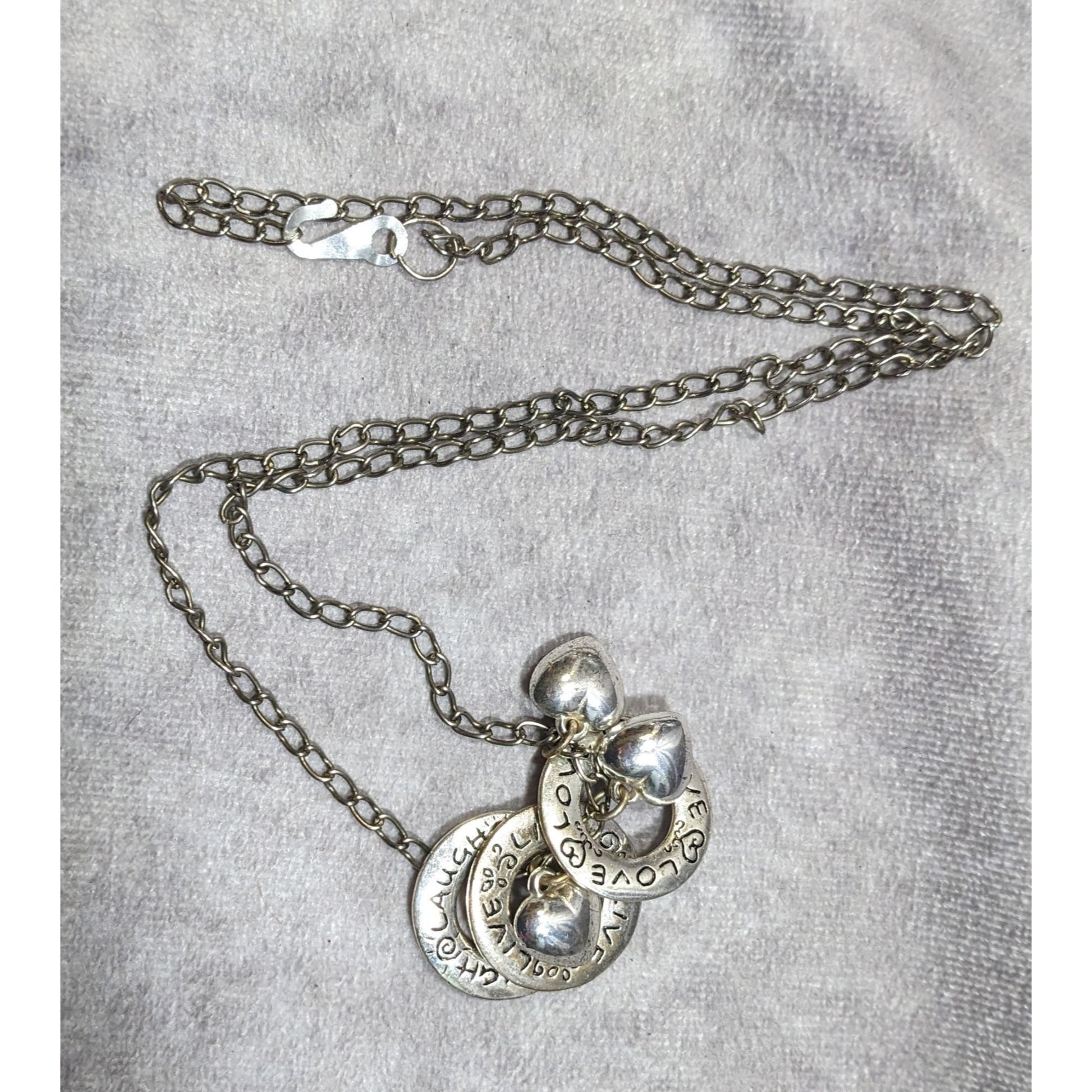 Live Laugh Love Ring And Heart Charm Silver Tone Necklace