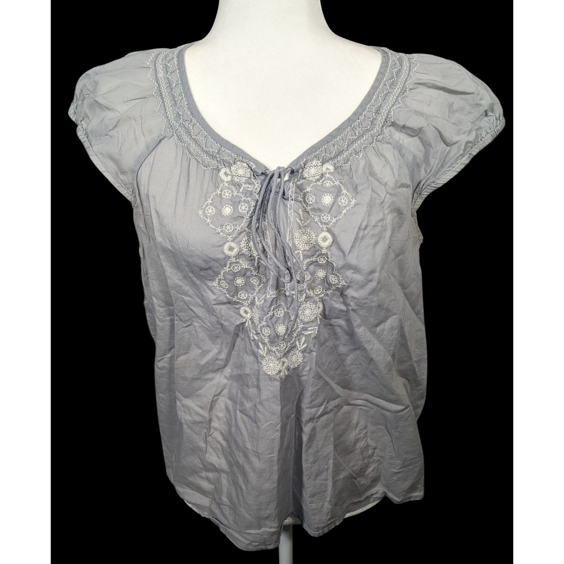 Loft Peasant Top Light Grey With White Embroidery Size Medium