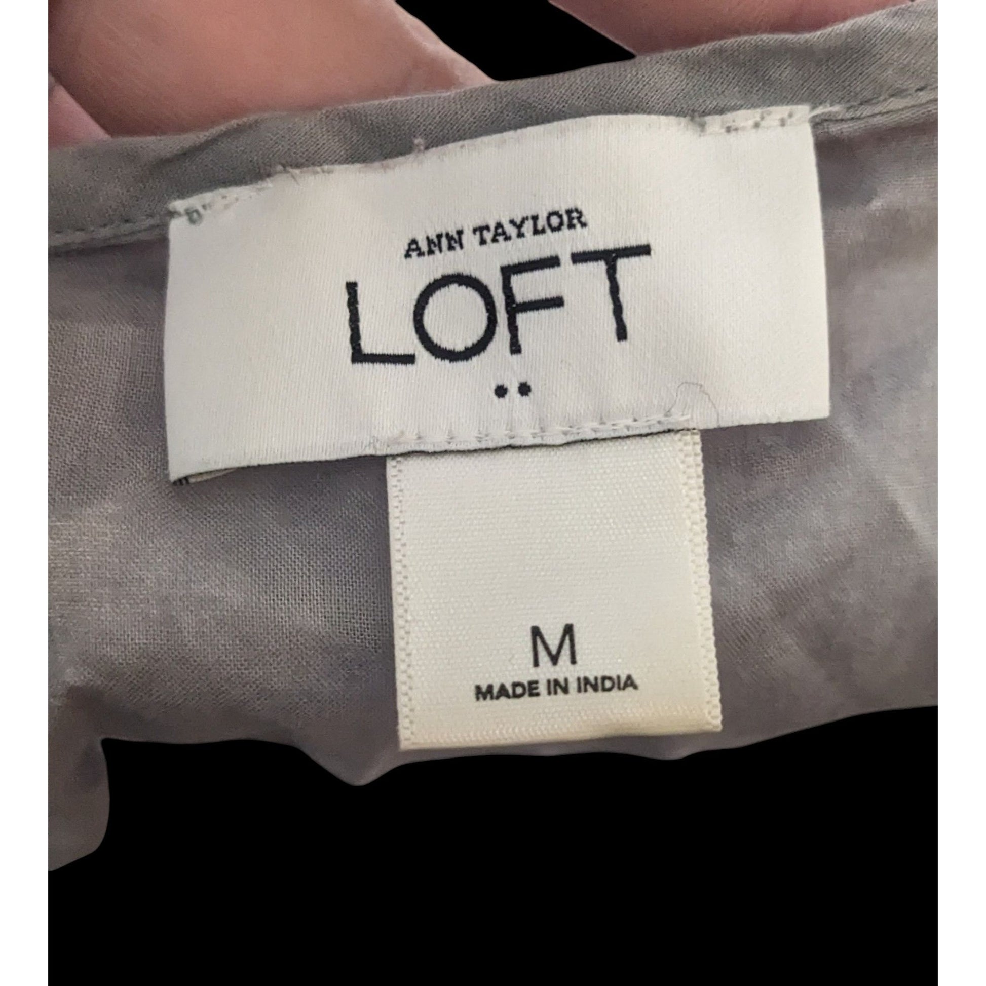 This elegant Loft peasant top features a light grey color with intricate white embroidery. Perfect for casual outings or a day at the office, it offers comfort and style. Made of quality materials.
