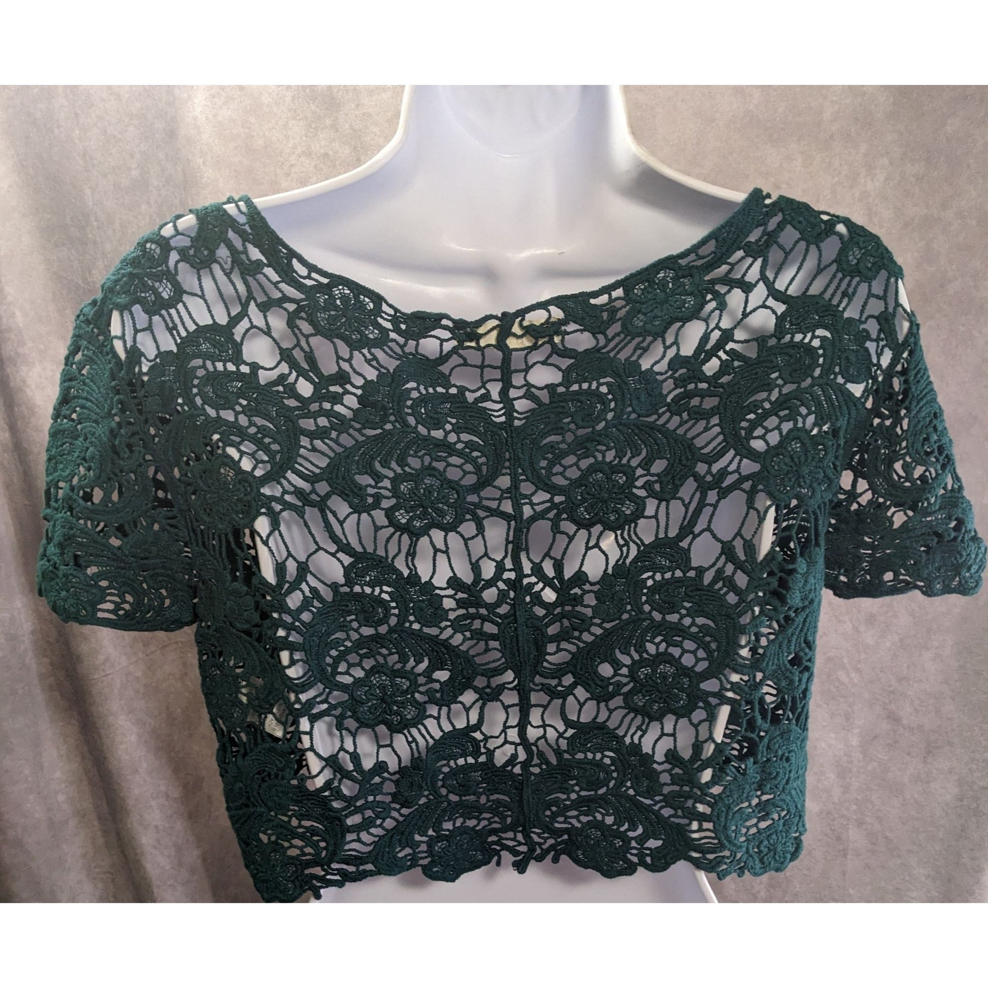Love Culture Floral Crochet Lace Green Cropped Top Size S/M