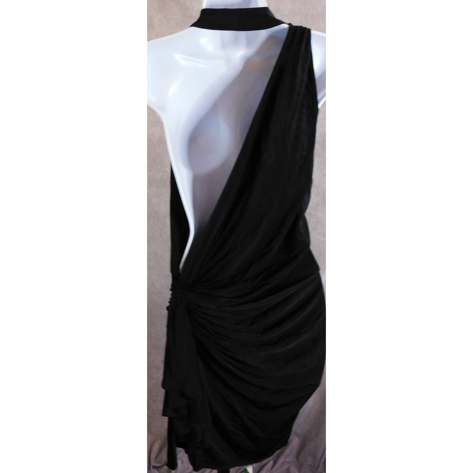 Gorgeous black asymmetrical Natasha style dress by Marciano. It's brand new with tags. It's made of a soft, slinky fabric, with an asymmetrical cut. It has one shoulder, with a cutout back, and a cross over front with a snap to secure it. The side without the shoulder has gathering to balance out the look, and it makes it look super unique and sexy! Perfect for a night out, clubs, and parties!